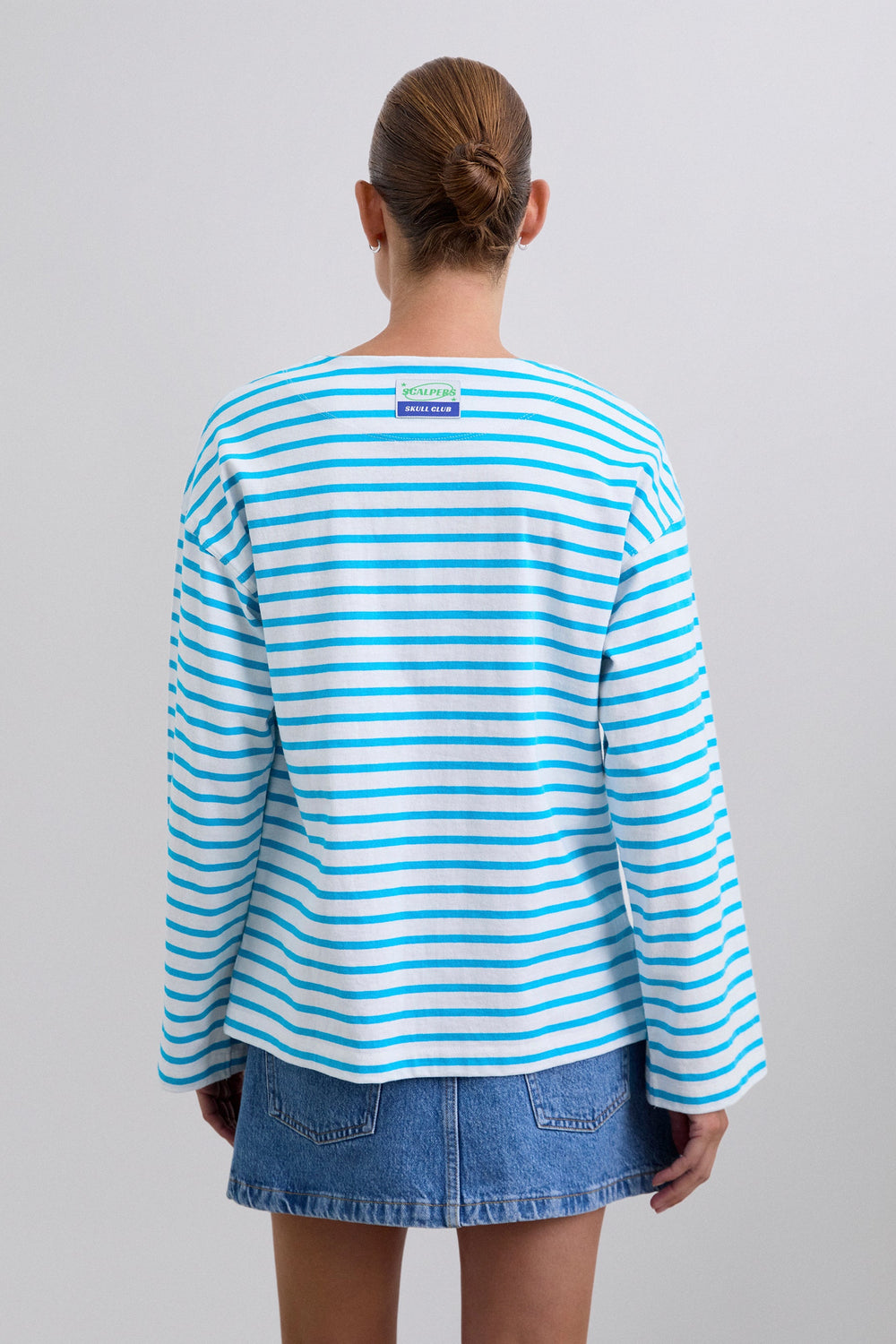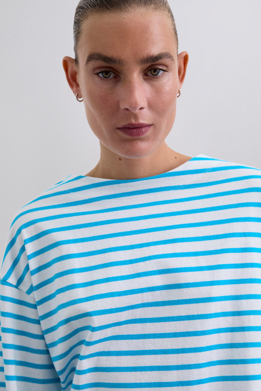 Stripe T-shirt made from 100% cotton. Relaxed fit, round neck and long sleeves. Logo label detail at the back.