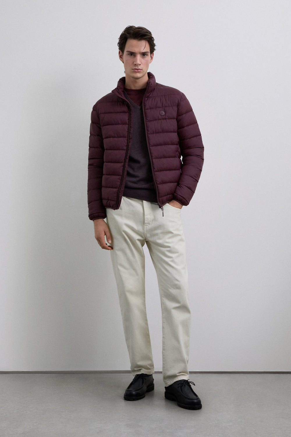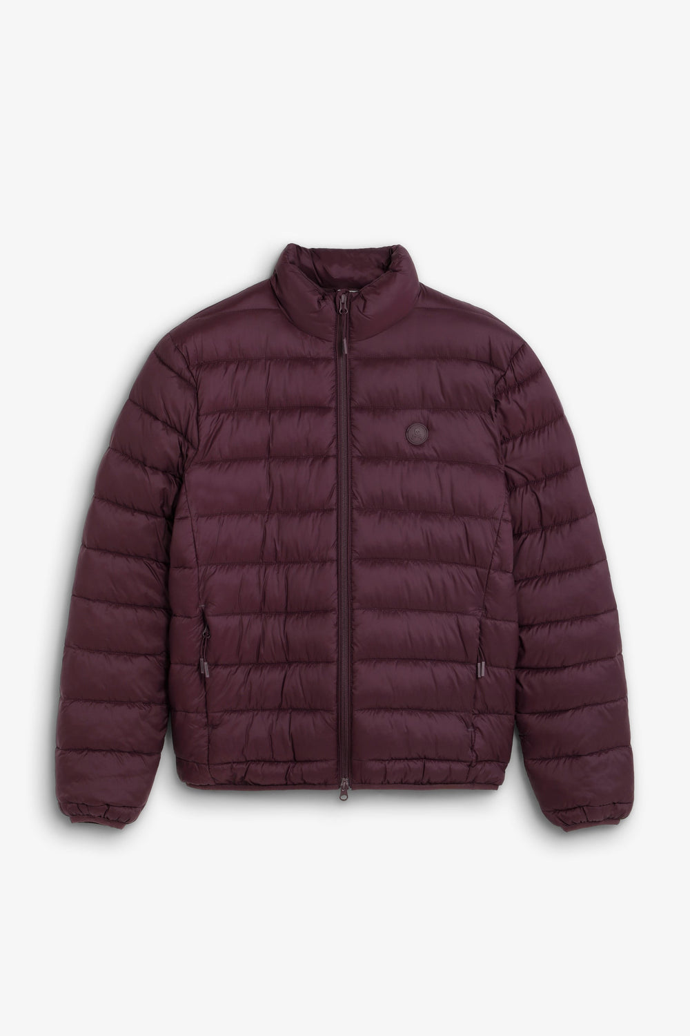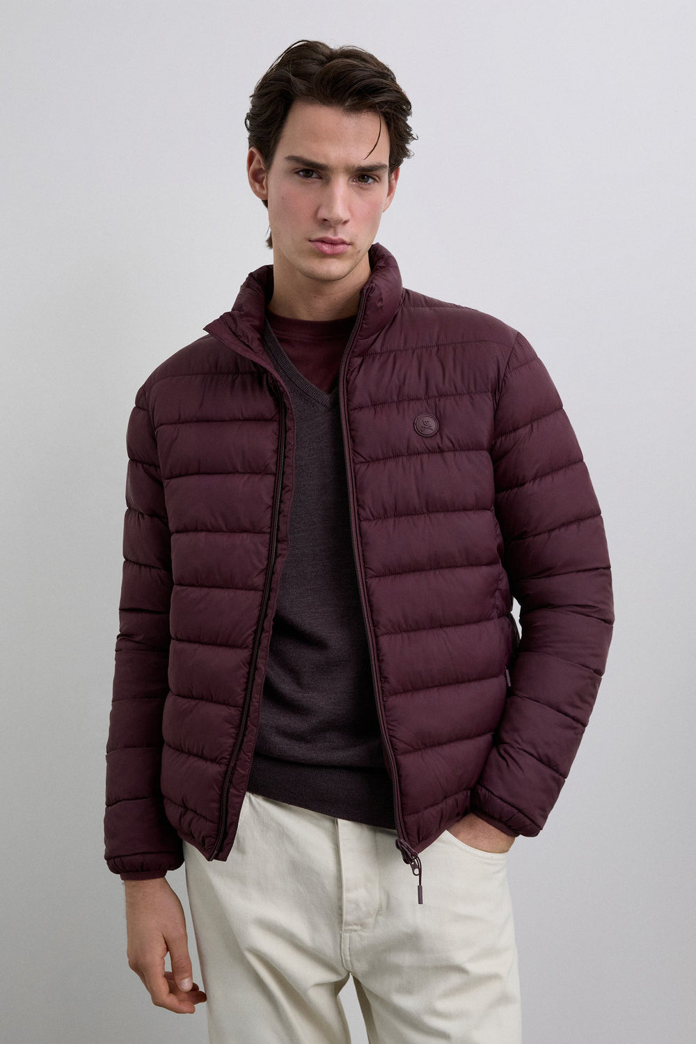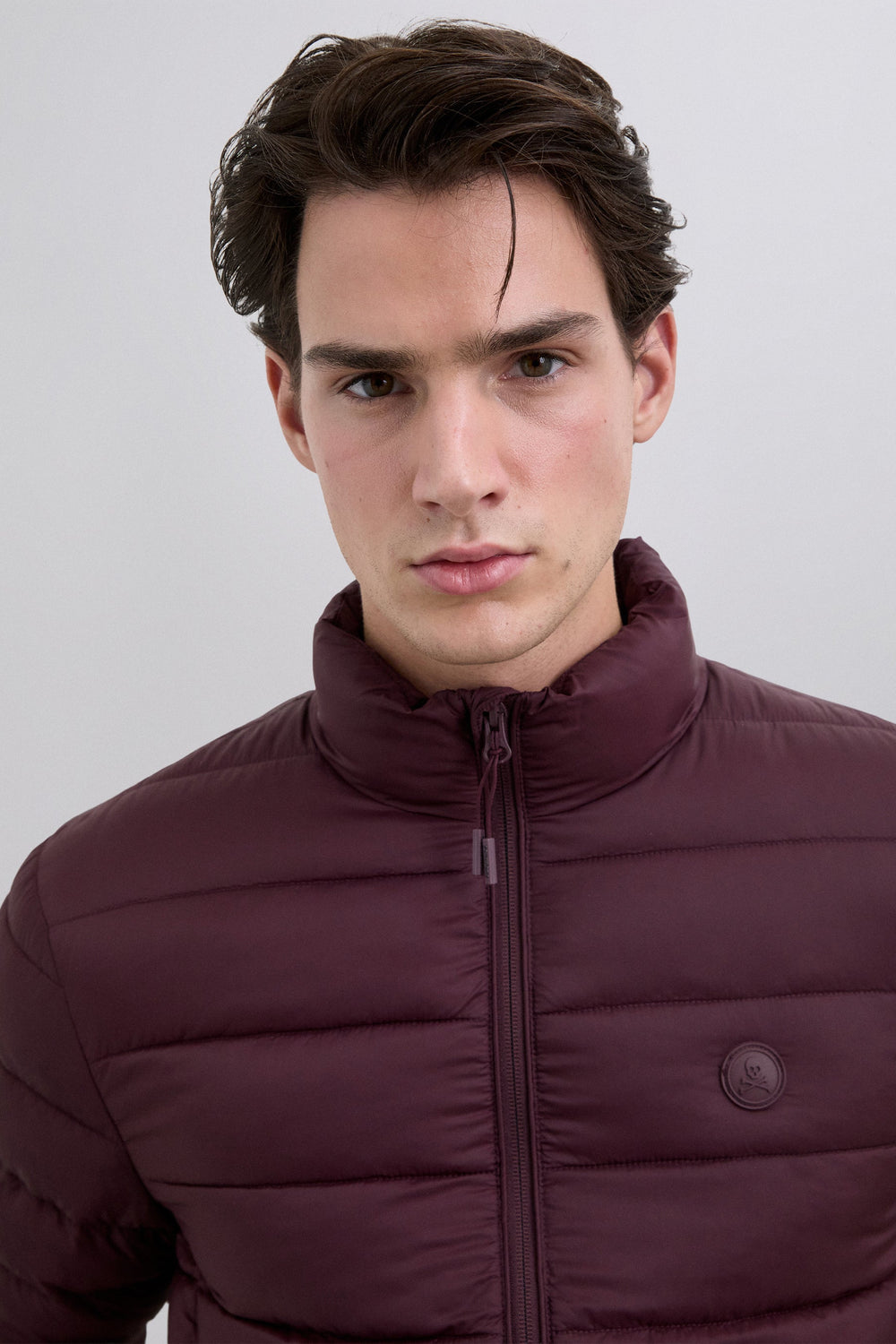 Puffer cardigan. Water repellent. Inner lining made of technical fabric. Concealed side pockets with fleece lining. Engraved double slider zip fastening. Rubberised patch with matching logo on chest.