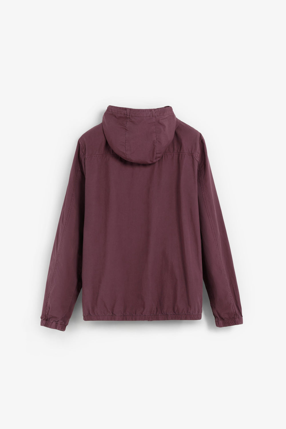 Lightweight jacket made of 100% cotton BCI. Regular fit. Adjustable drawstring hood and zip fastening. Long sleeves with elastic cuffs. Front flap pockets. Lined.