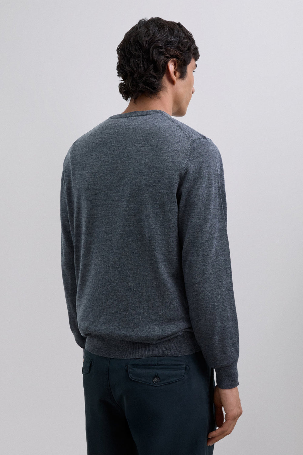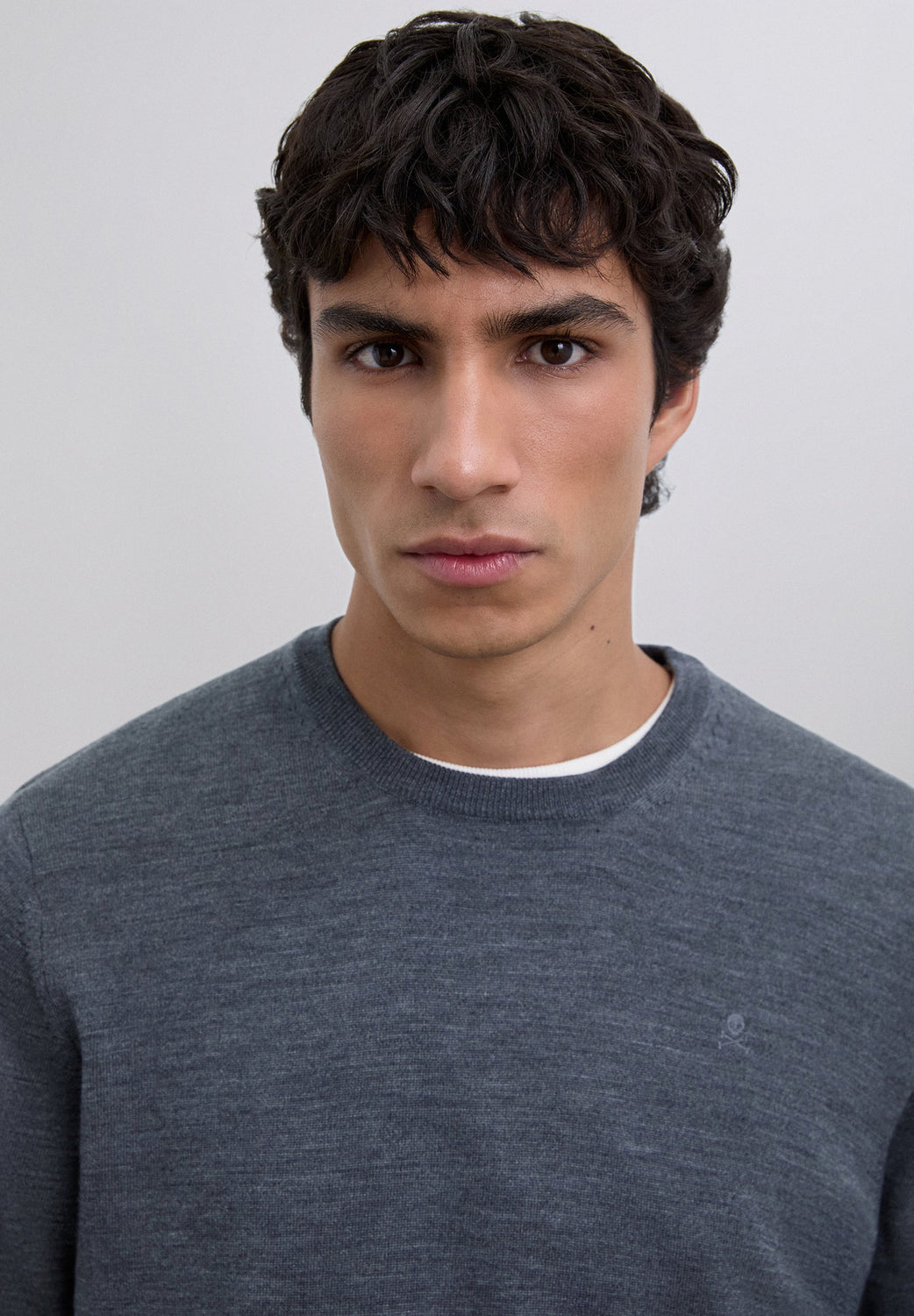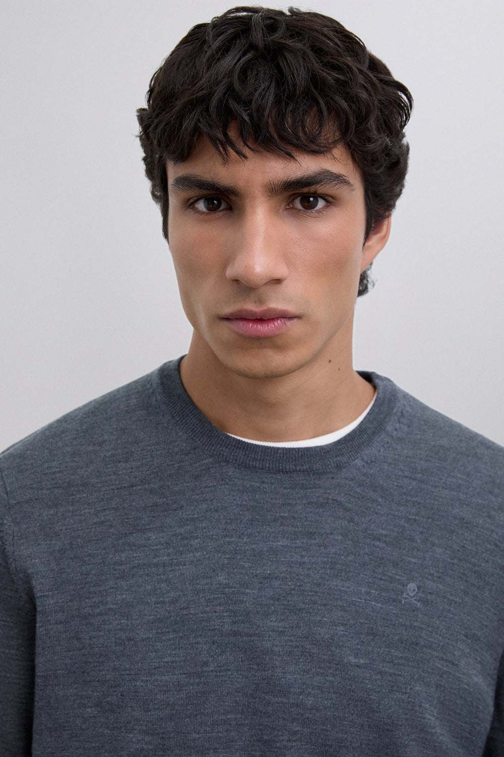 Sweater made of 100% wool. Regular Fit. Round neck. Long sleeves. Matching embroidered skull detail on the chest. Ribbed trim.