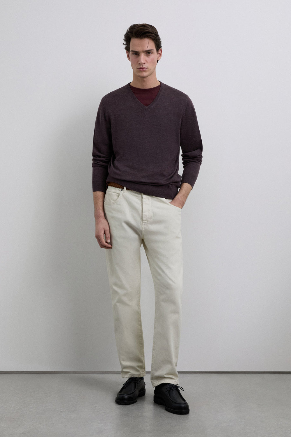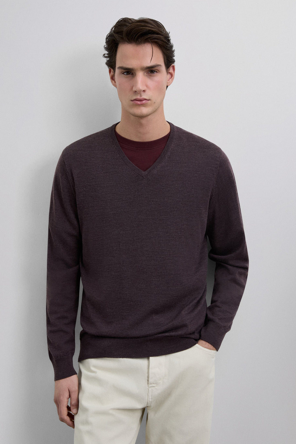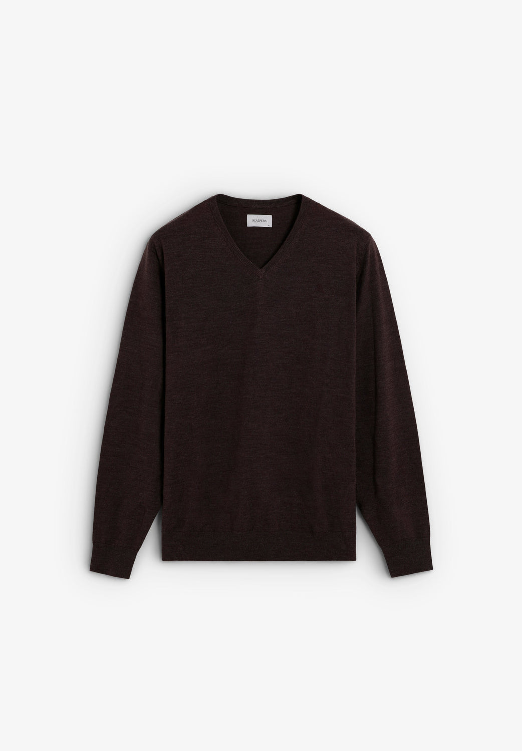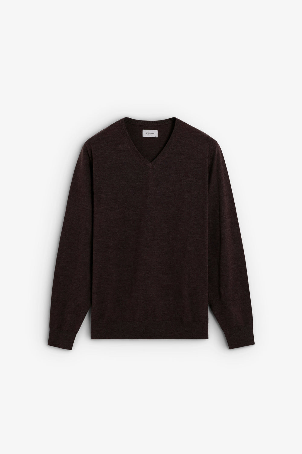 Sweater made of 100% wool. Regular Fit. V-neck. Long sleeves. Matching embroidered skull detail on the chest. Ribbed trim.