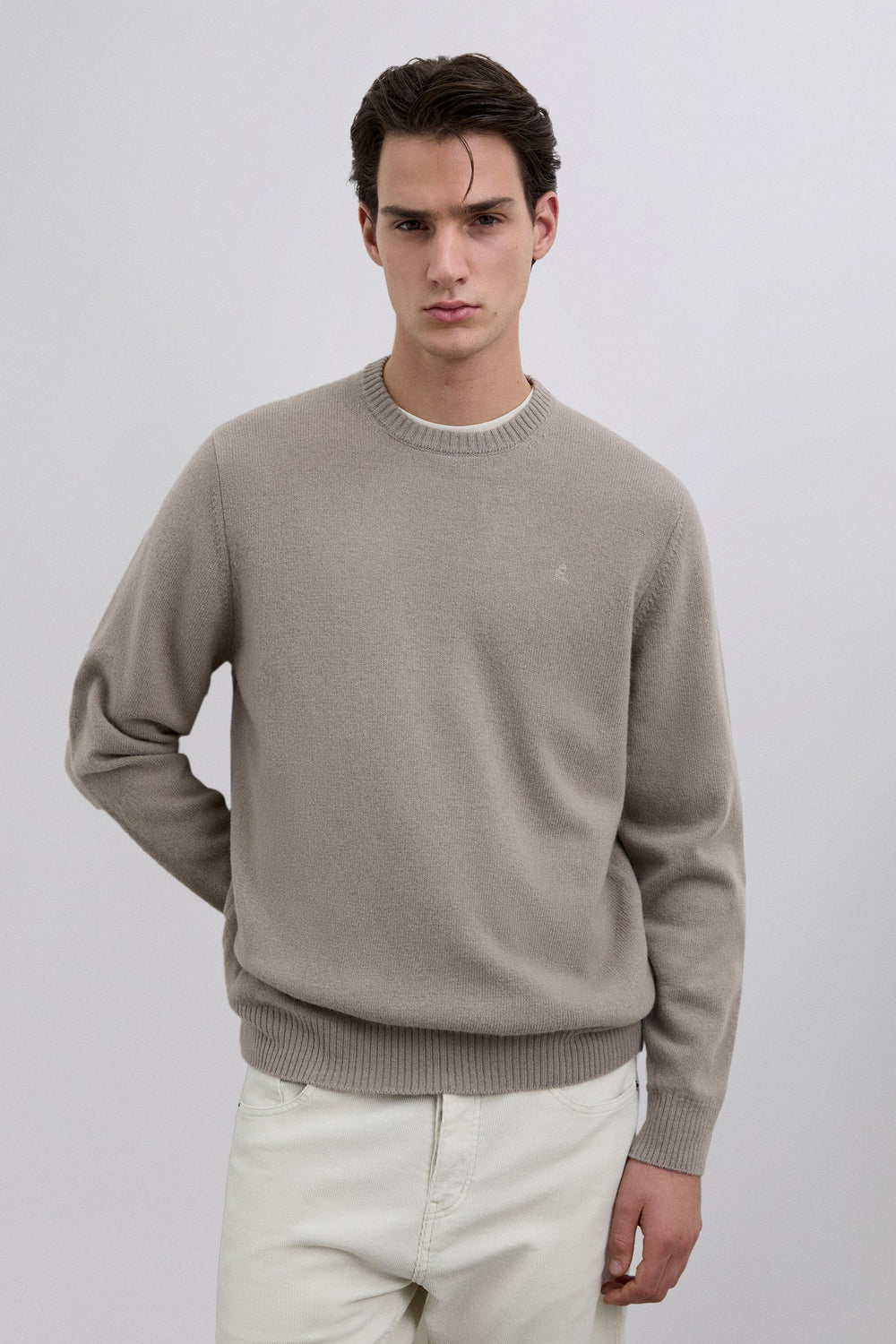 Sweater made of wool. Regular Fit. Round neck. Long sleeves. Logo label detail. Ribbed trim.