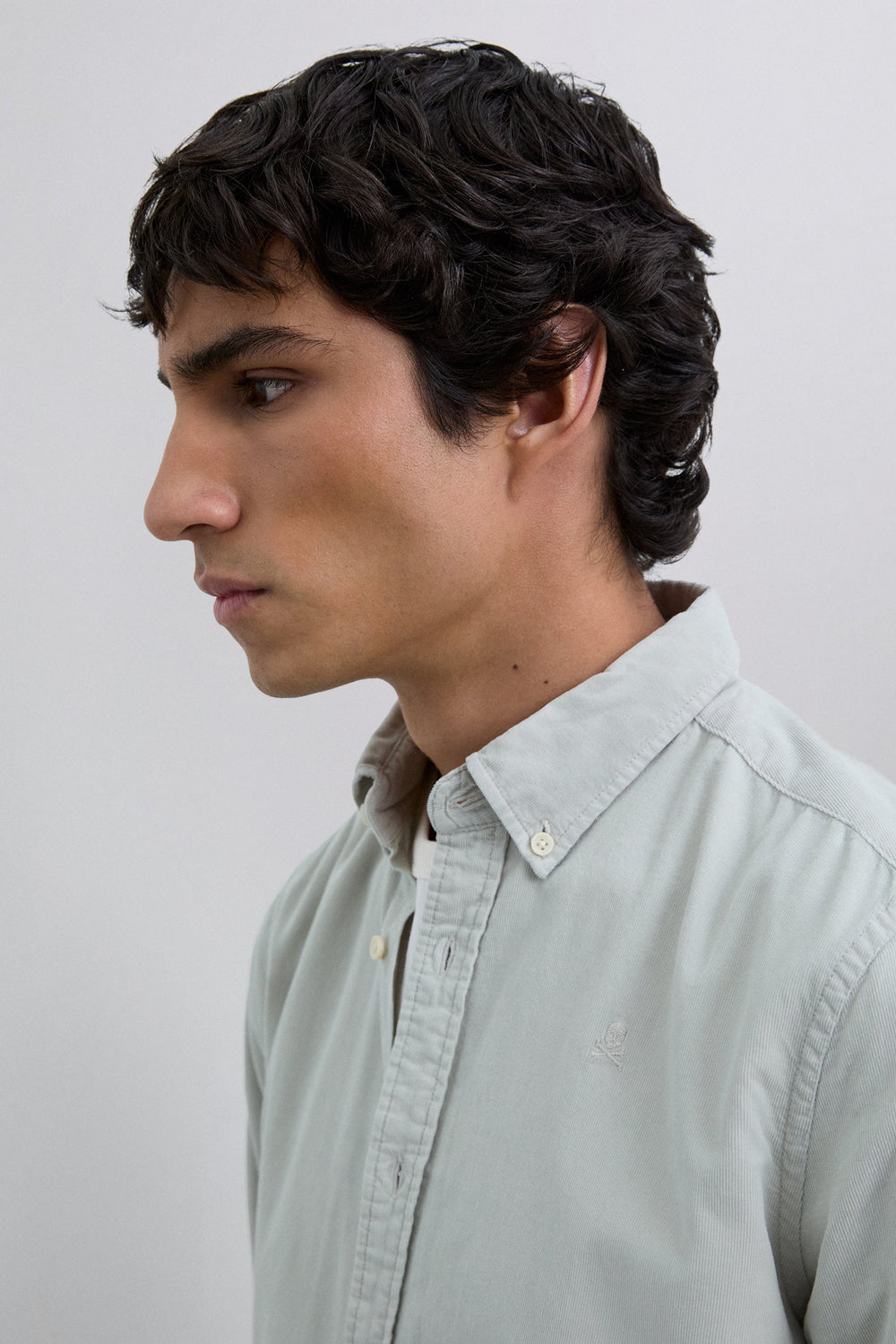 Shirt with embroidered skull on the chest. Made of 100% BCI cotton. Regular fit. Buttoned collar. Long sleeves with buttoned cuffs. Front button fastening. Pocket on the chest.