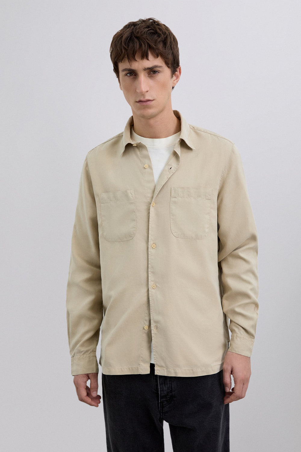 Shirt made of cotton. Slim fit. Button-up front. Long sleeves. Adjustable buttoned cuffs. Patch chest pockets.