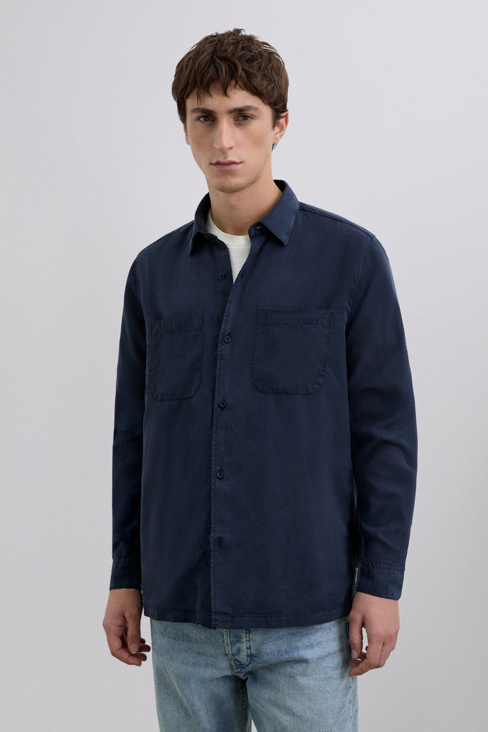Shirt made of cotton. Slim fit. Button-up front. Long sleeves. Adjustable buttoned cuffs. Patch chest pockets.