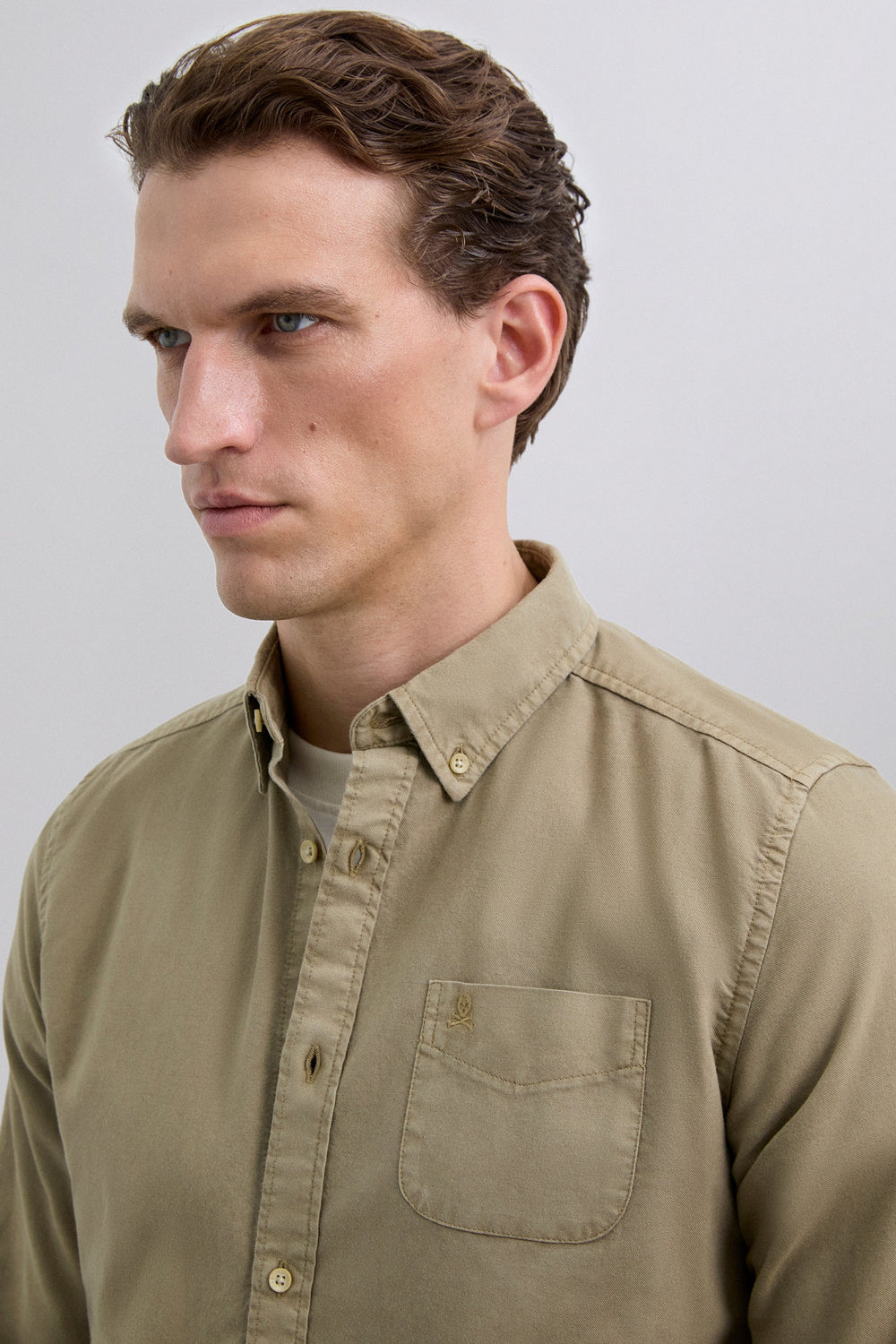 Shirt made of 100% BCI cotton. Regular fit. Matching embroidered skull detail on the chest. Buttoned collar. Long sleeves with buttoned cuffs. Patch pocket on the chest. Front button fastening.
