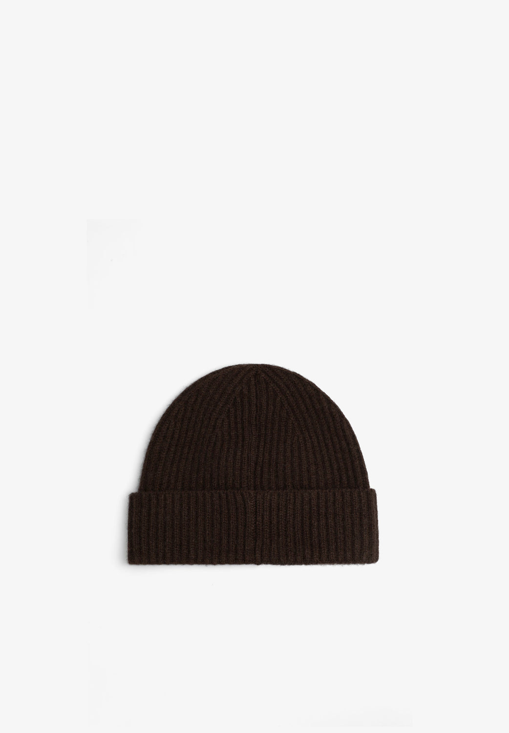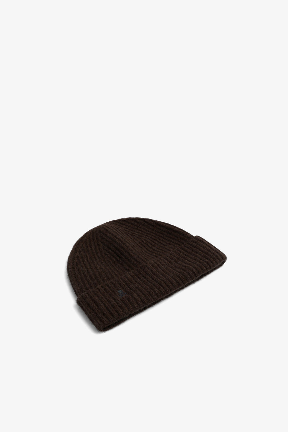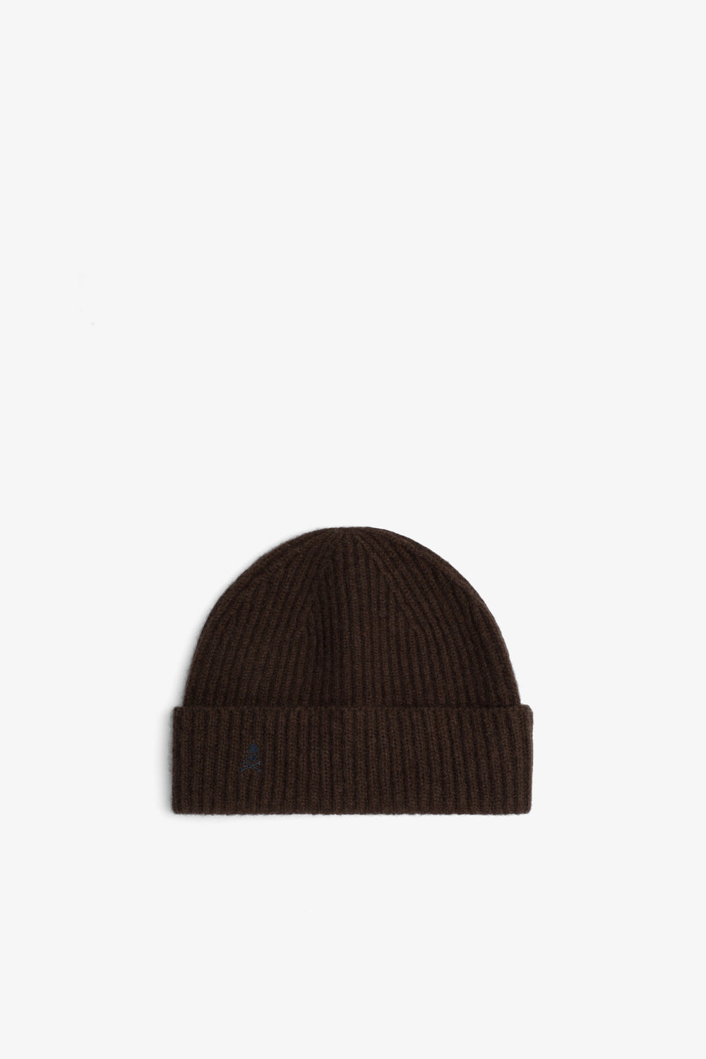 Knitted hat made of a wool and cashmere blend. Finished with a cuff. Contrast logo embroidery on cuff.