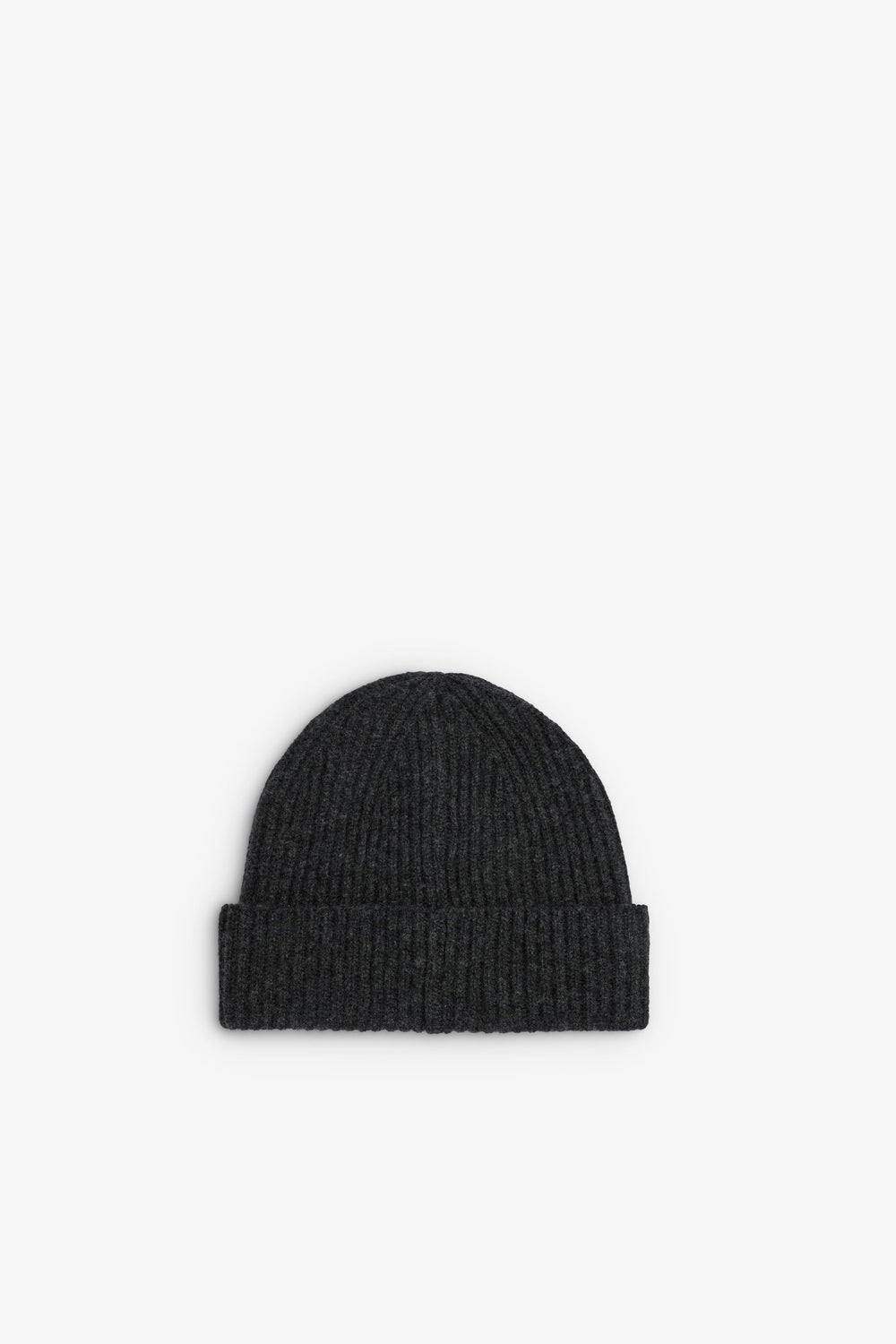 Knitted hat made of a wool and cashmere blend. Finished with a cuff. Tonal logo embroidery on the cuff.