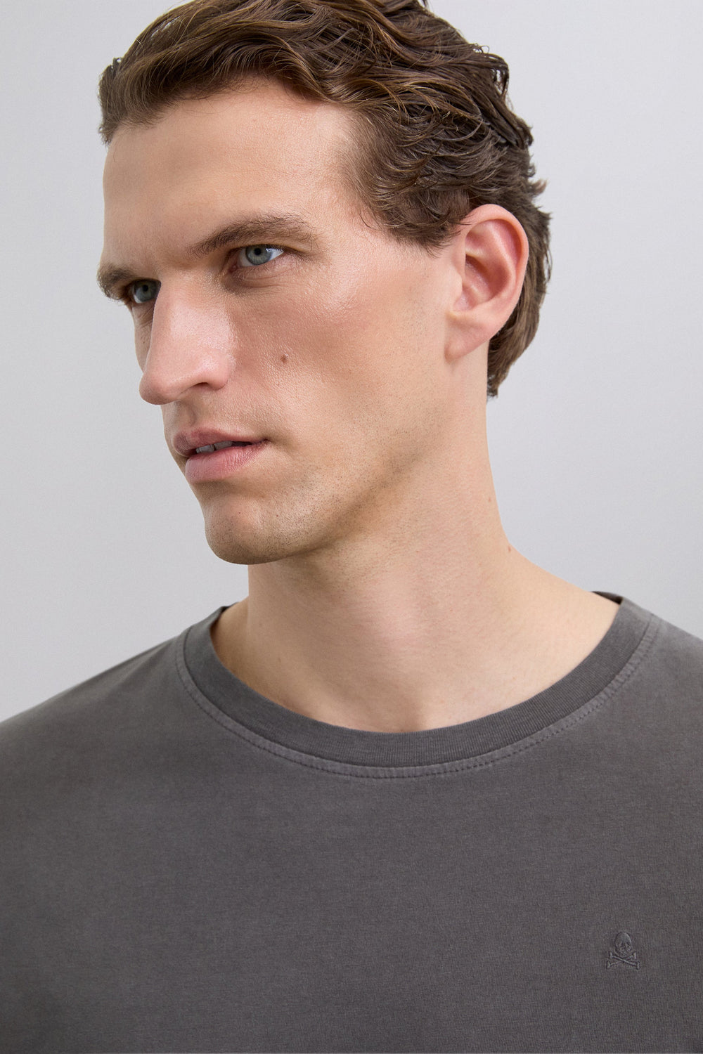 T-shirt made of 100% BCI cotton. Regular fit, round neck and short sleeves. Matching embroidered skull detail.