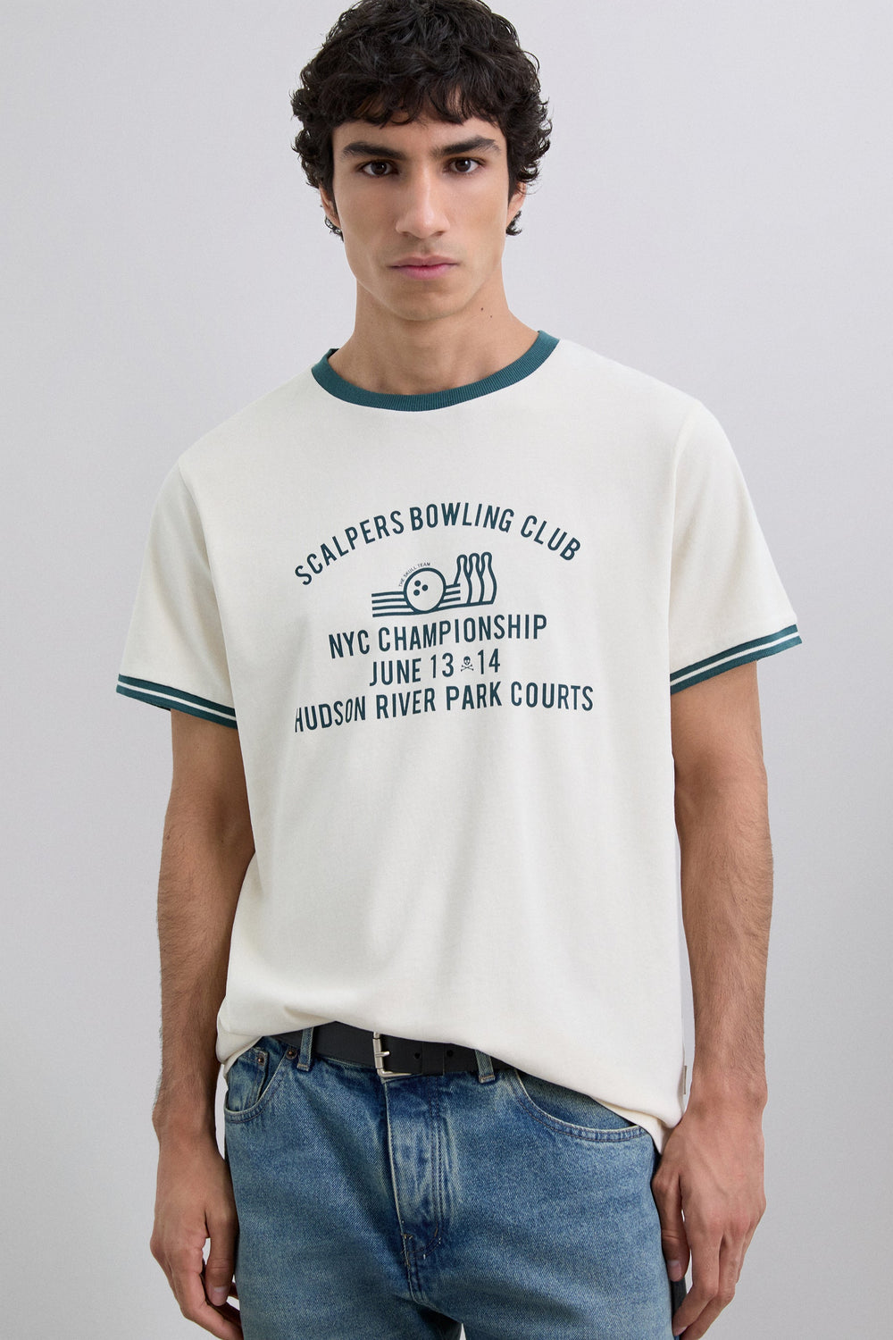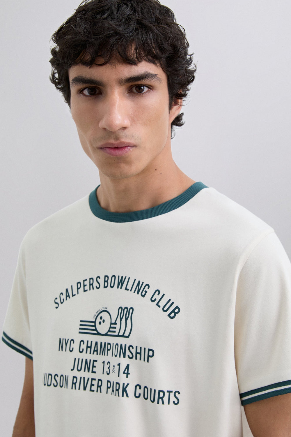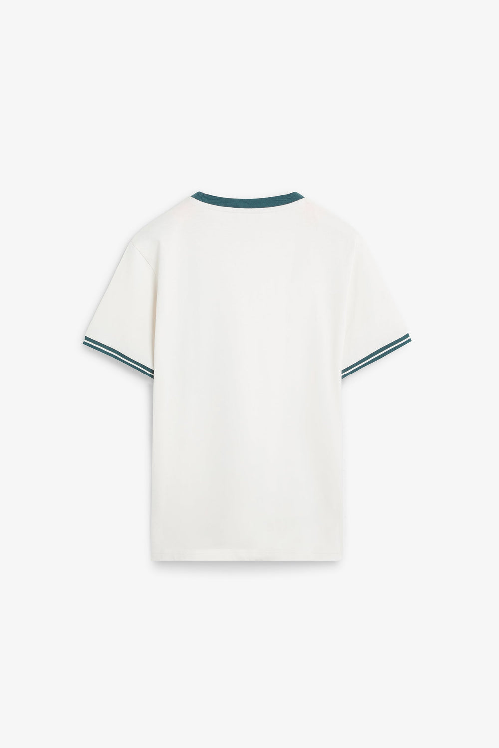 T-shirt made of 100% BCI cotton. Short sleeve. Front print. Regular fit. Contrast ribbed trim on collar and cuffs.