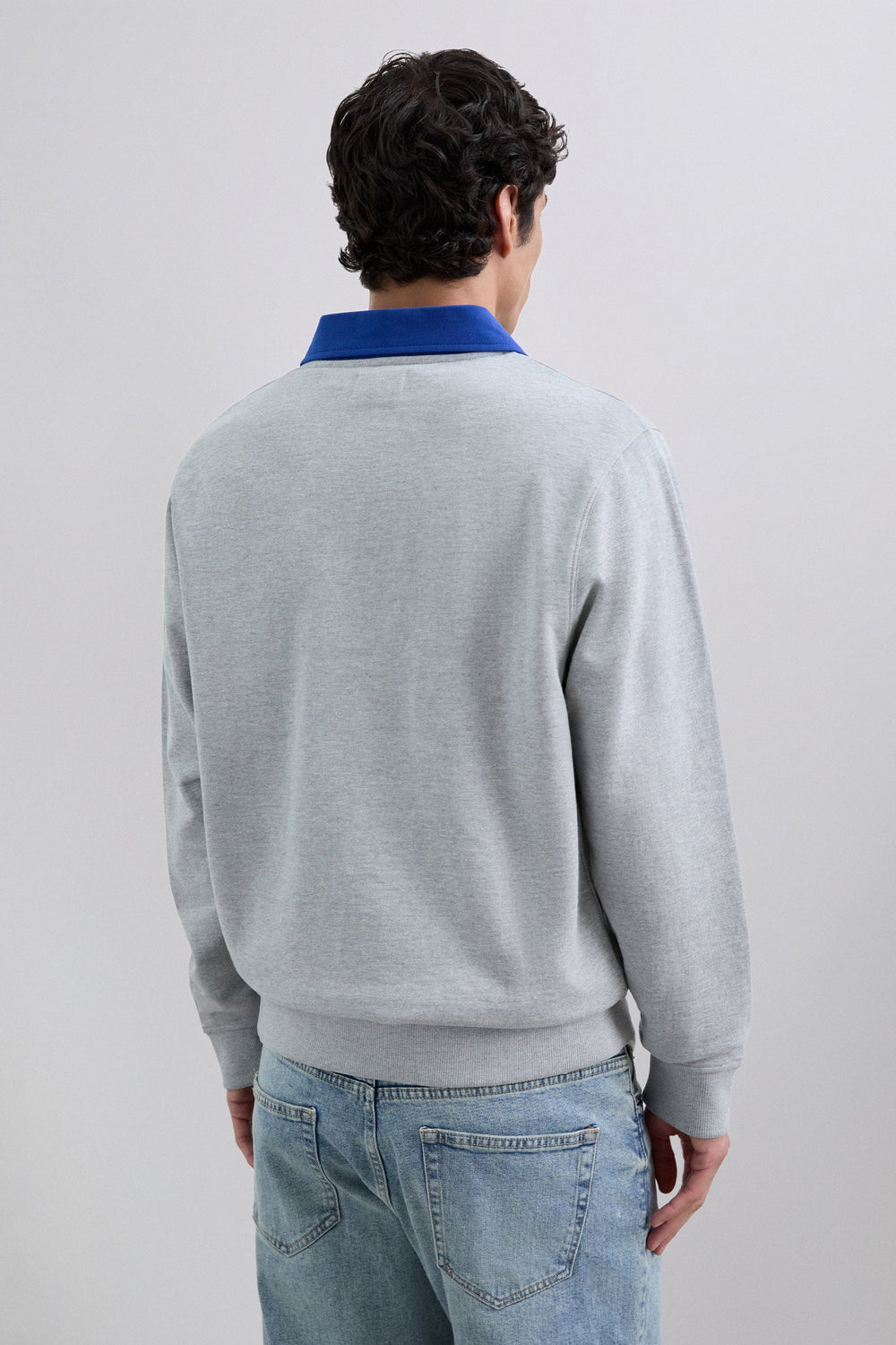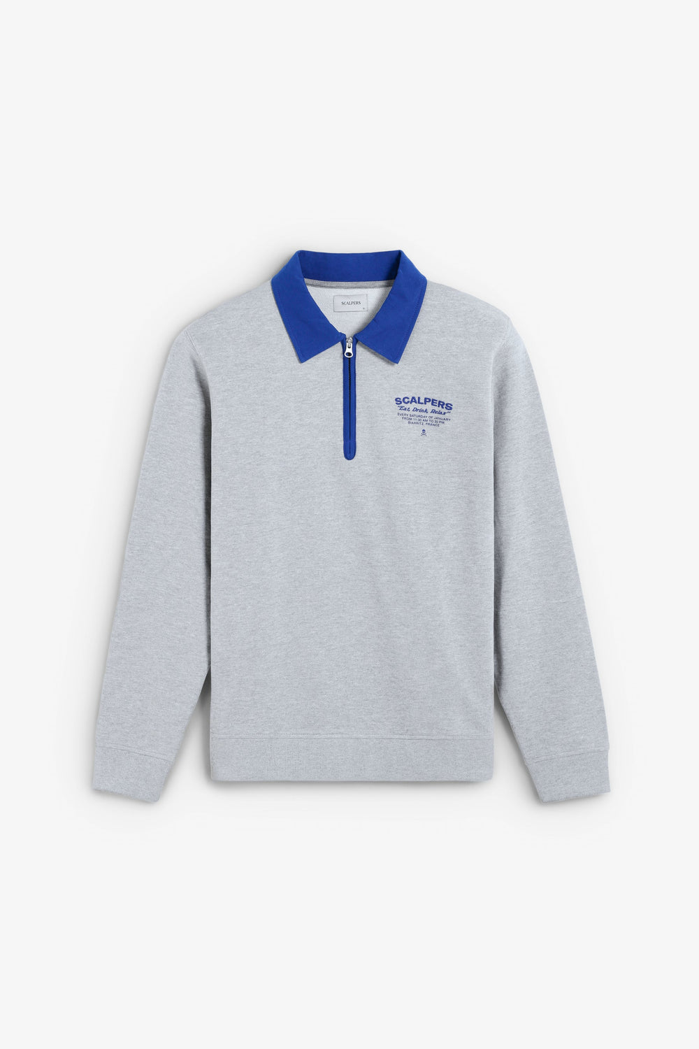 Sweatshirt made of 100% BCI cotton. Polo collar with half zip. Regular fit. Long sleeves. Contrast skull and embroidered logo. Ribbed trim.