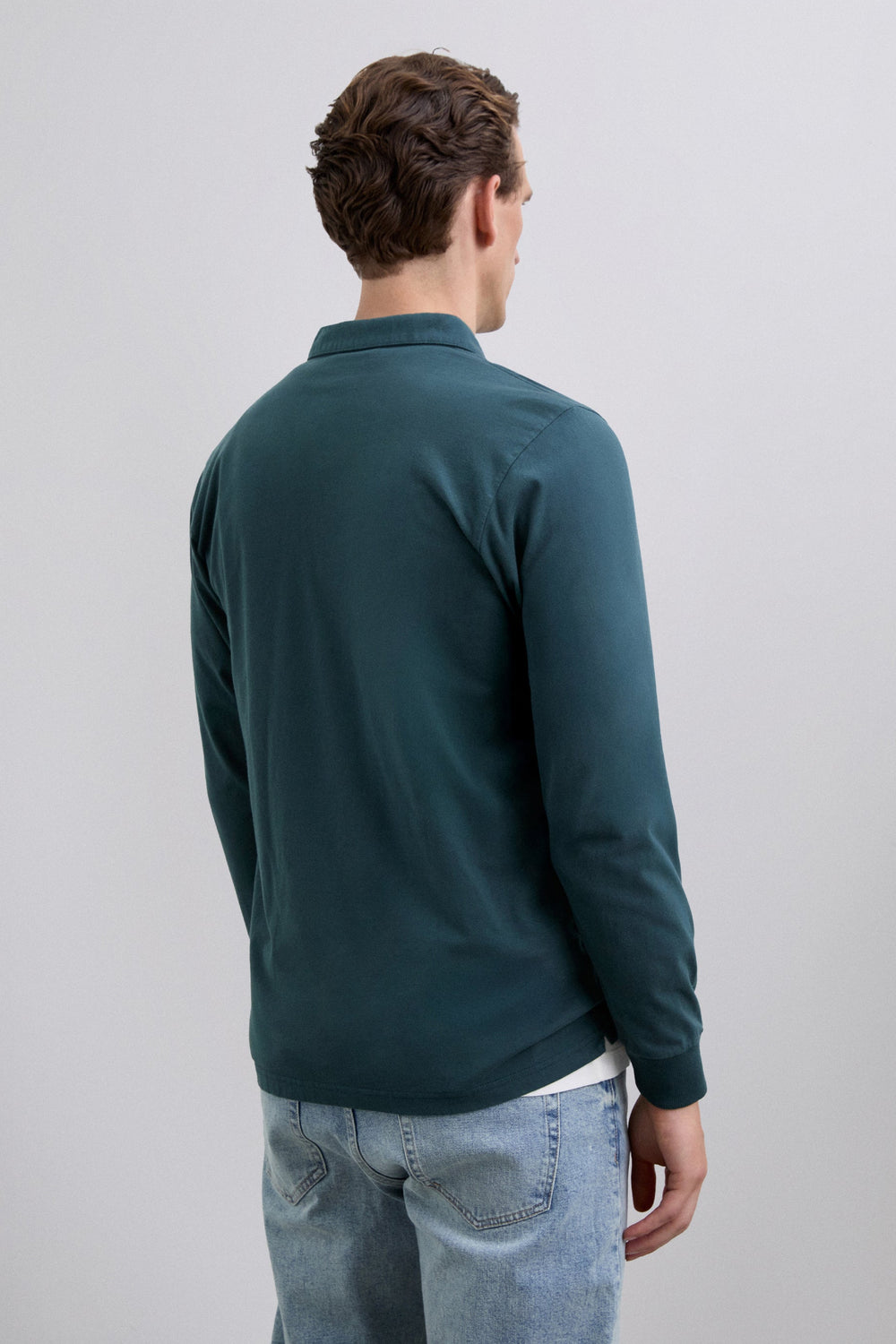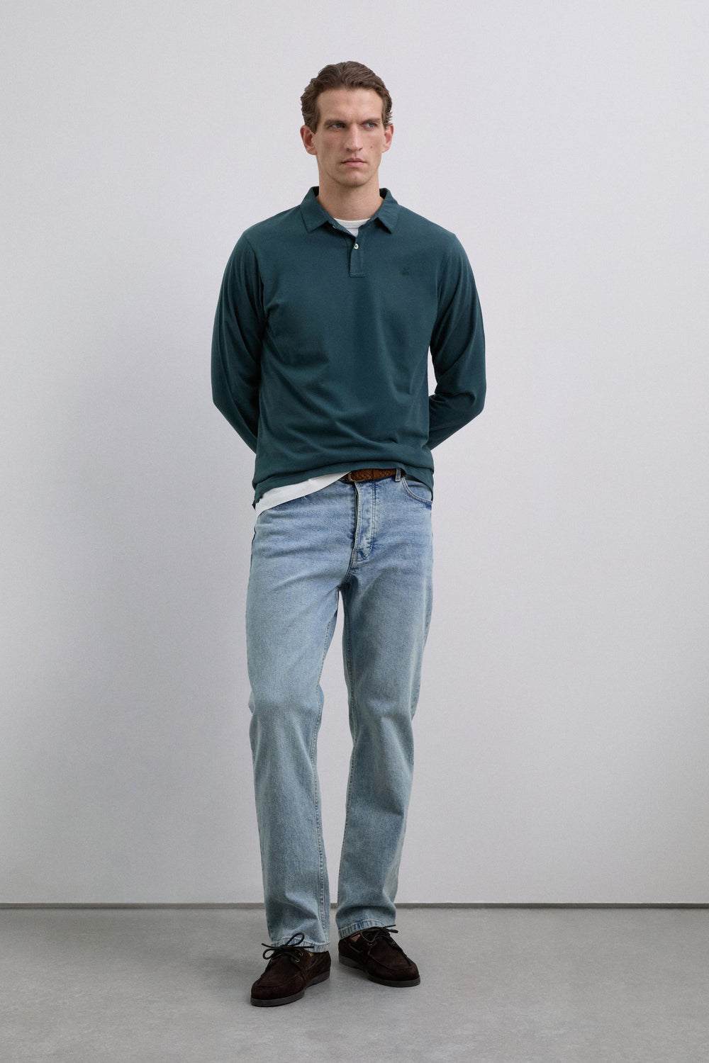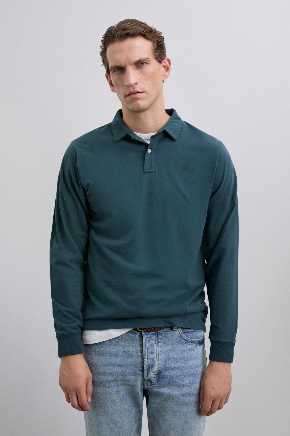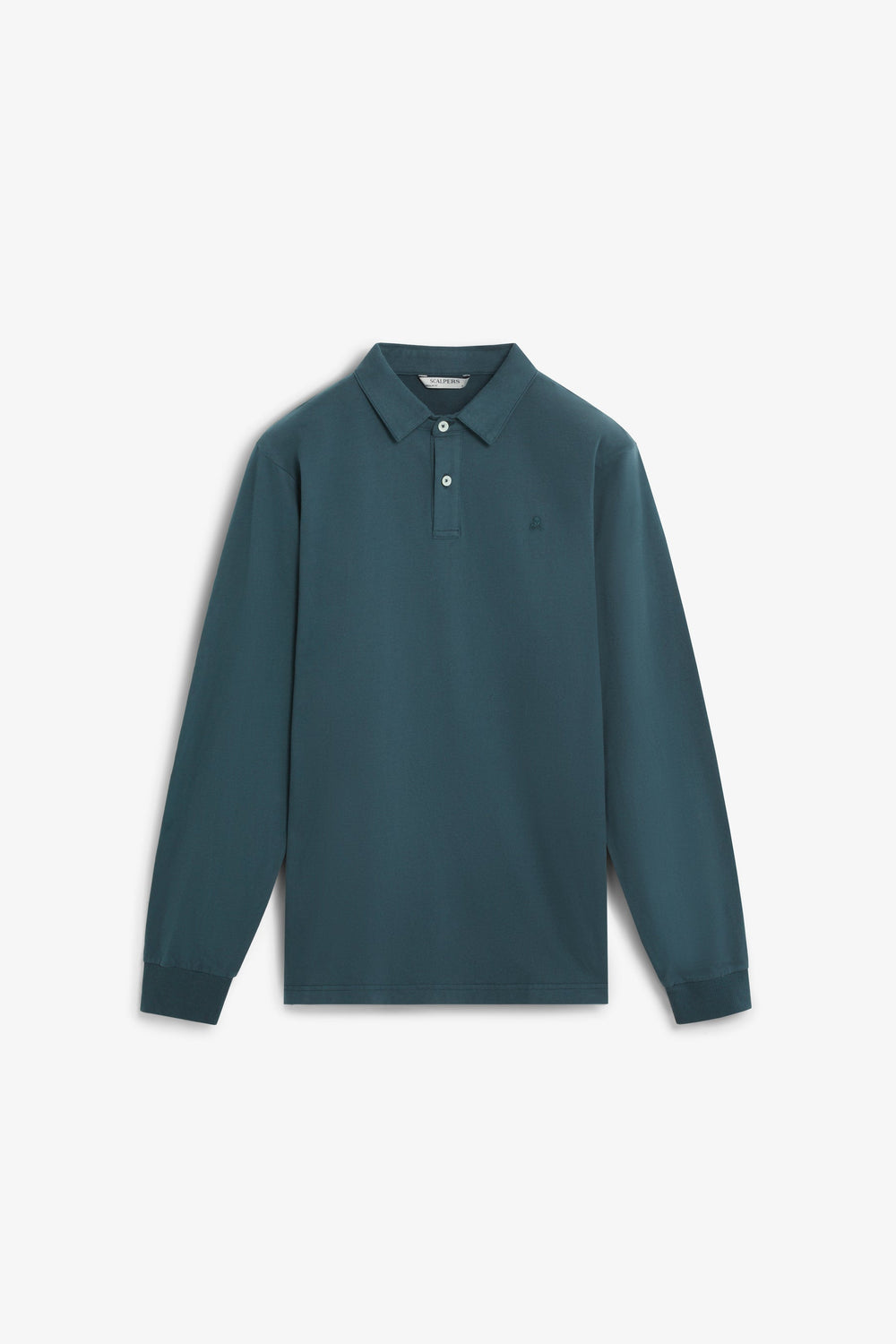 Long sleeve polo shirt made of 100% BCI cotton. Matching embroidered skull detail on the chest. Shirt collar. Front button fastening.