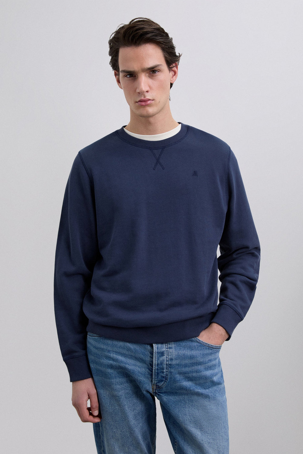 Basic sweatshirt made of 100% BCI cotton. Regular fit, round neck and long sleeves. Matching embroidered skull.