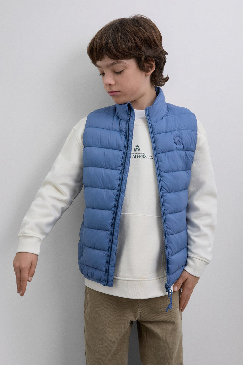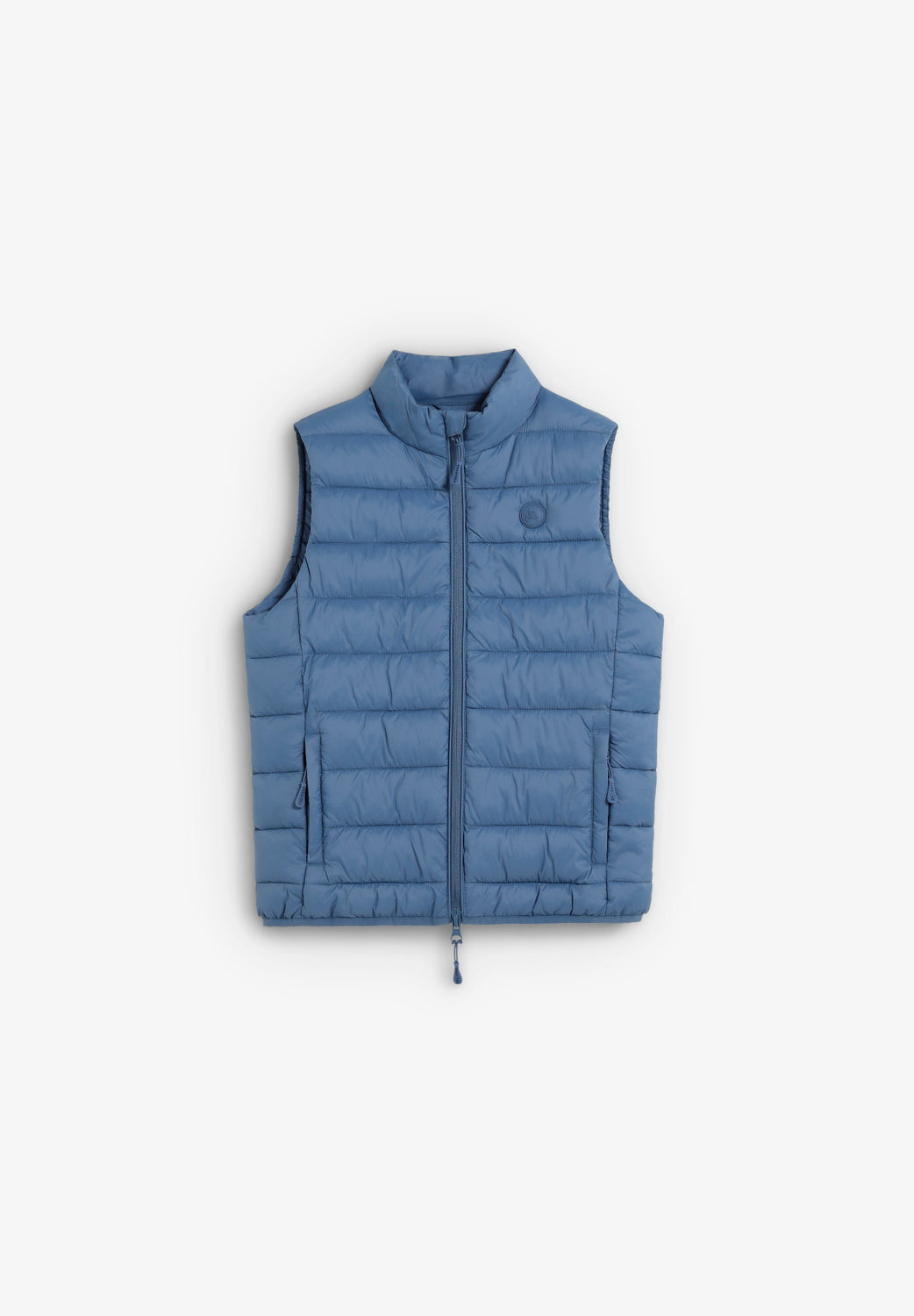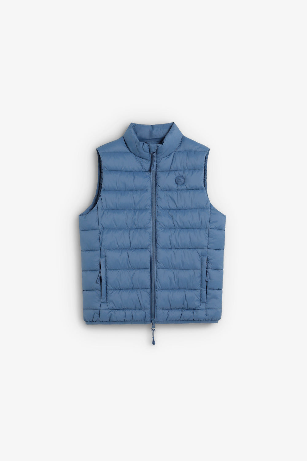 Quilted vest made of recycled polyester. Regular fit. High collar. Zip fastening and side pockets.