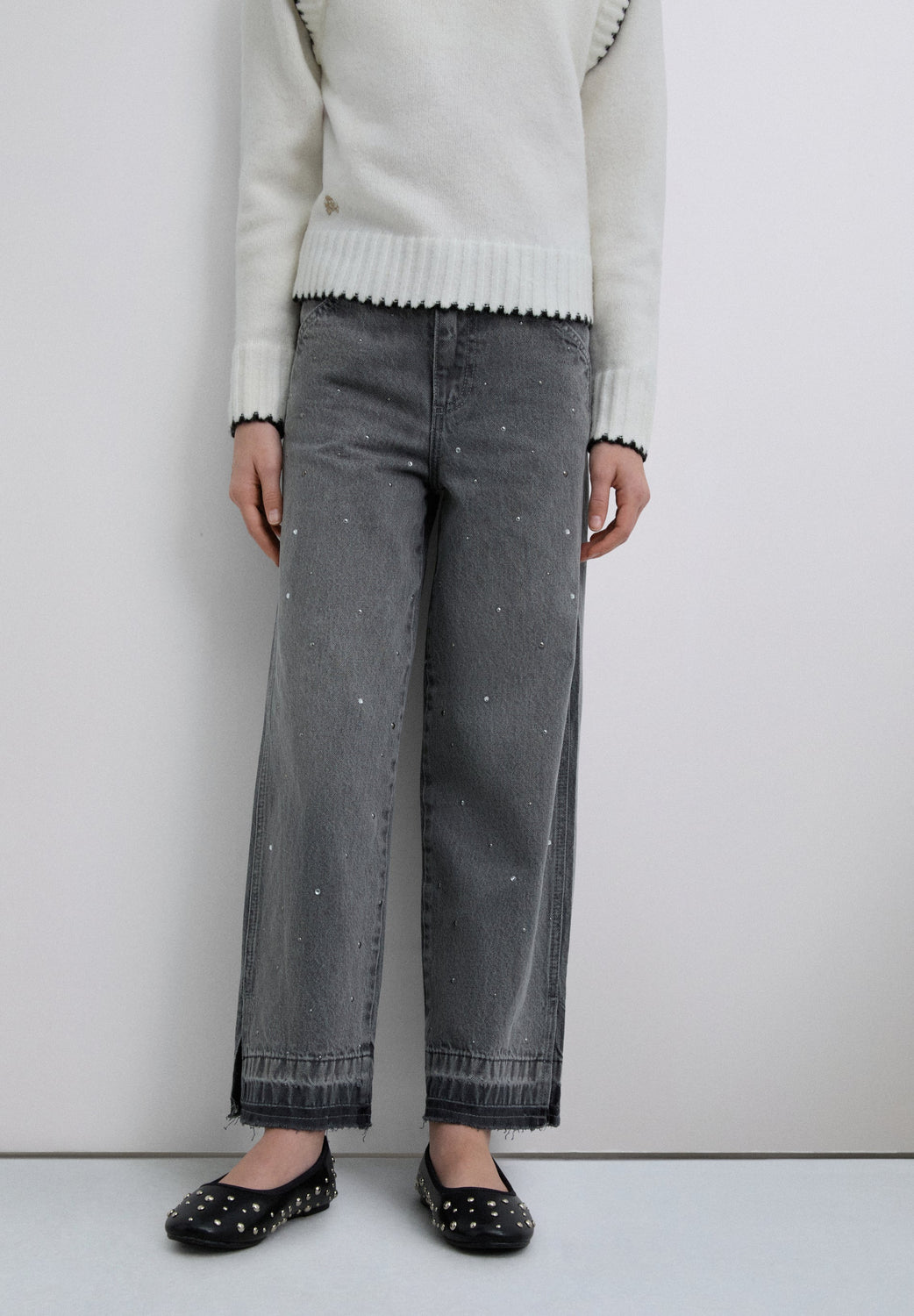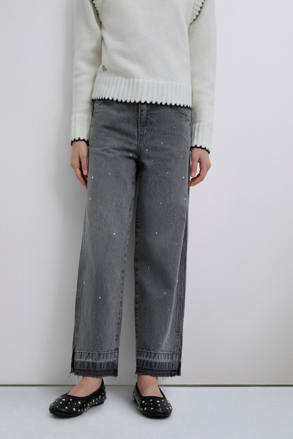Trousers made of 100% BCI cotton. Studded detailing. Two front pockets and back pockets. Stitched hems.