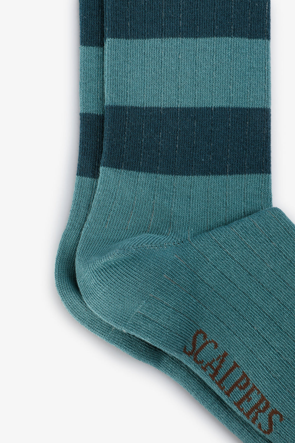 Socks made of an organic cotton blend. Stripe print. Contrast embroidered skull detail. Contrast logo detail on the bottom.