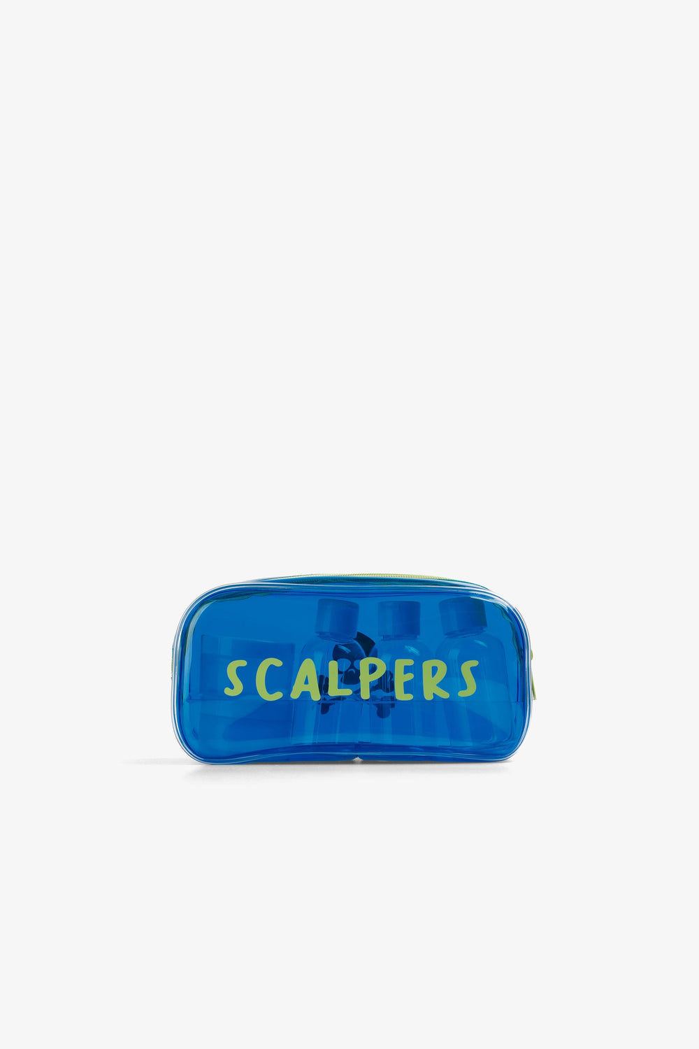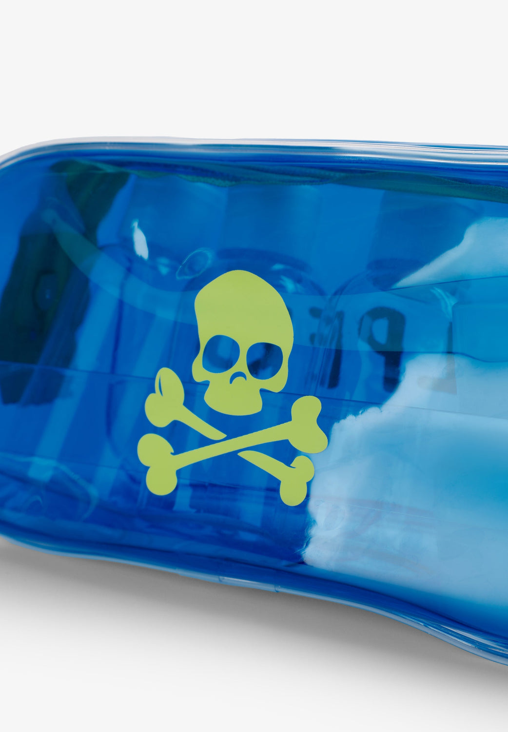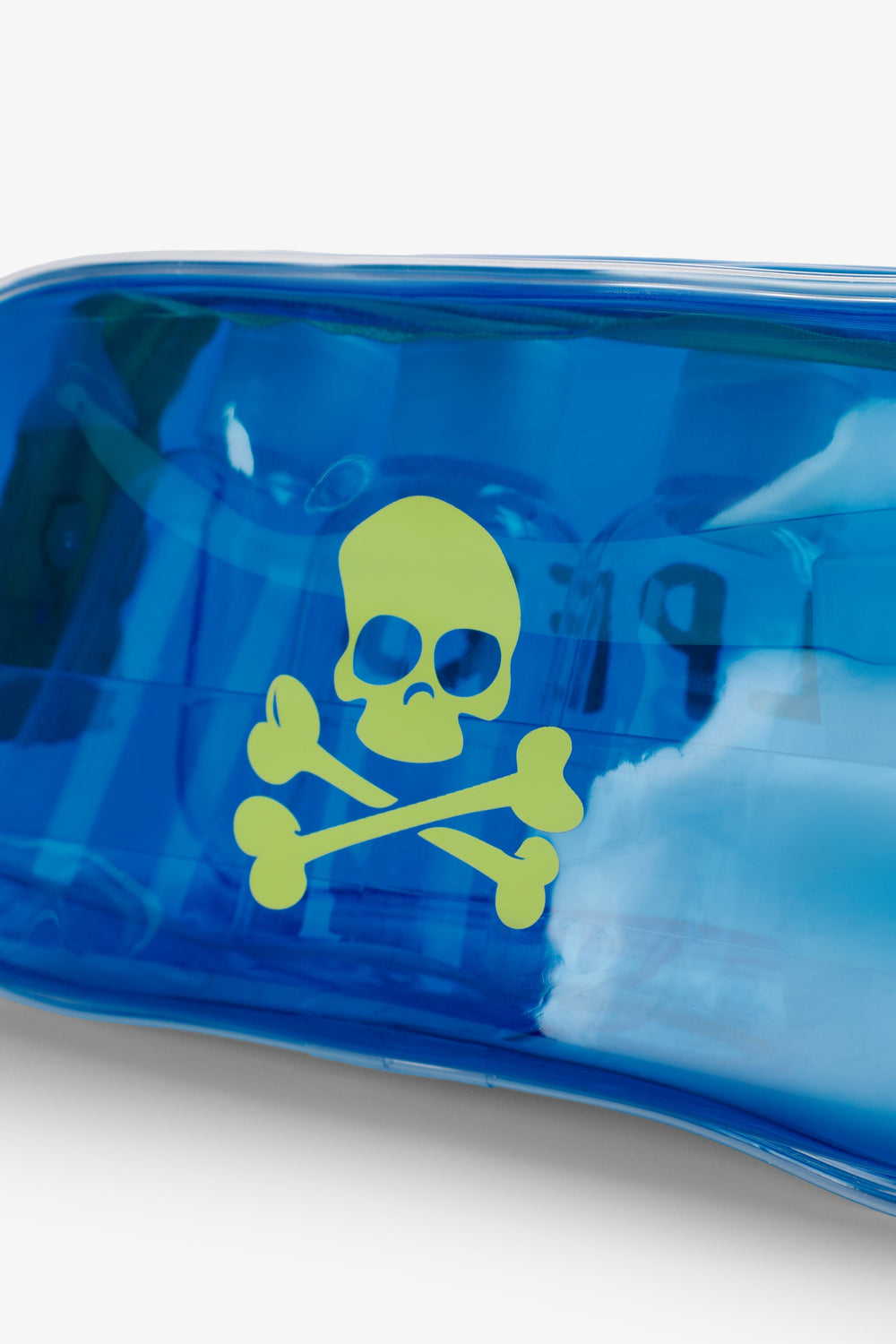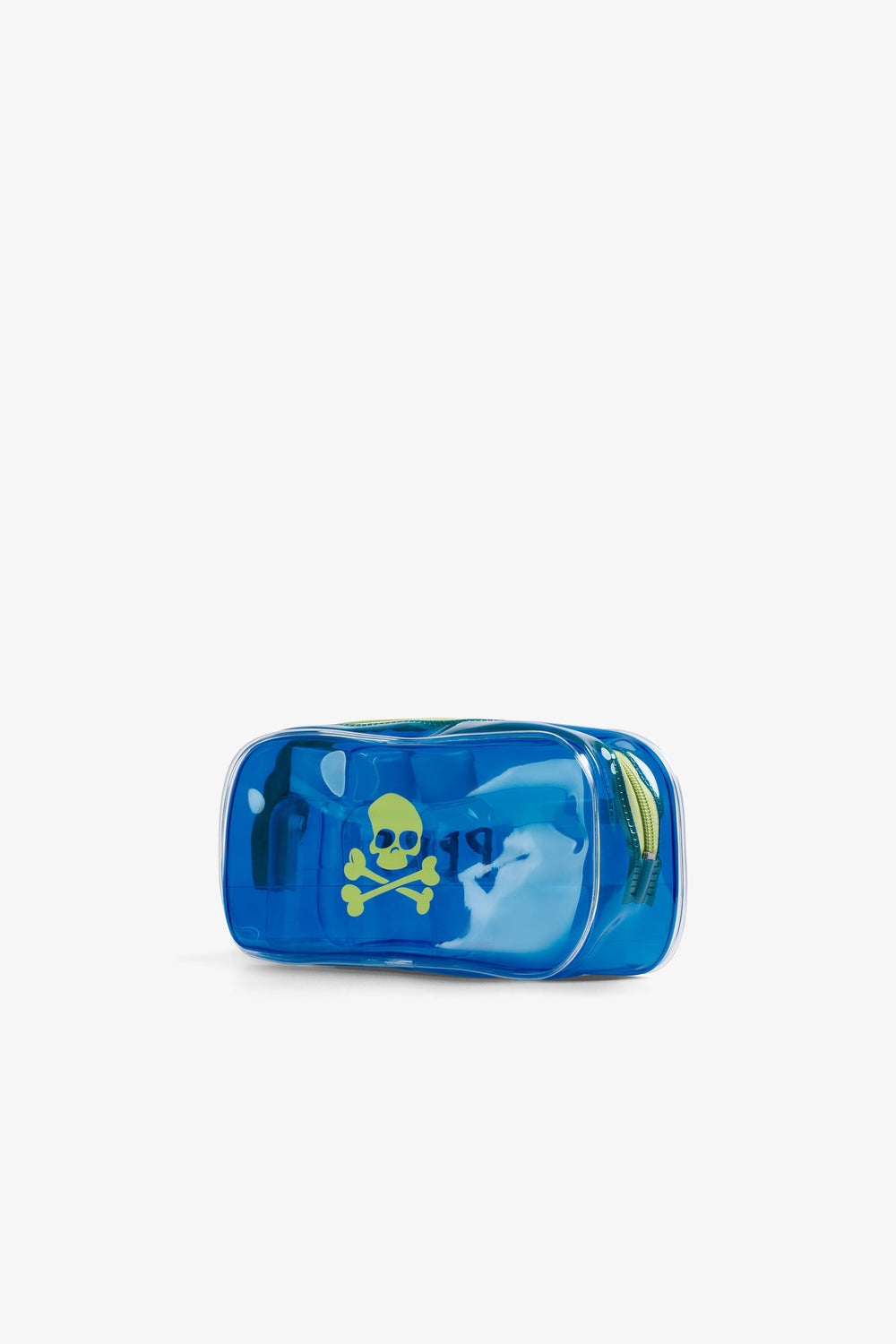 Toiletry bag made of 100% PVC with contrasting logo and skull. Zip fastening.