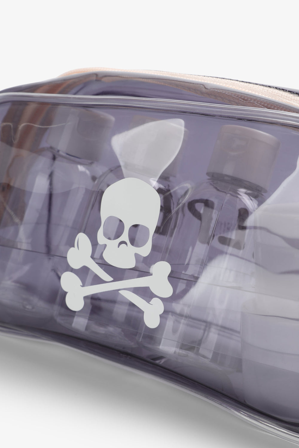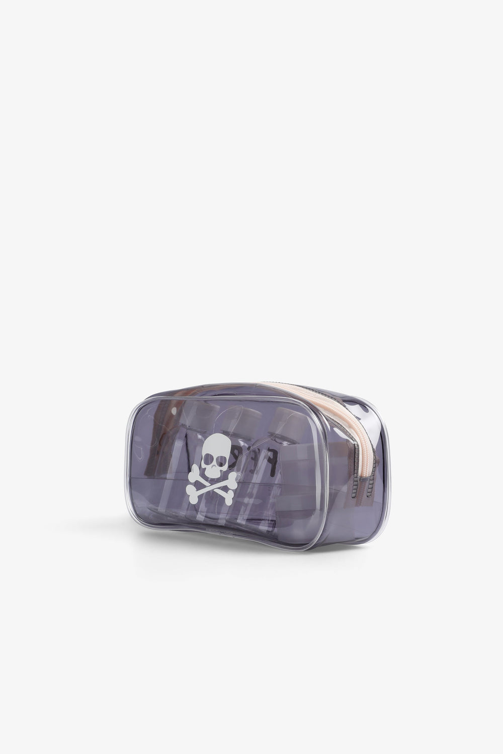 Toiletry bag made of 100% PVC with contrasting logo and skull. Zip fastening.