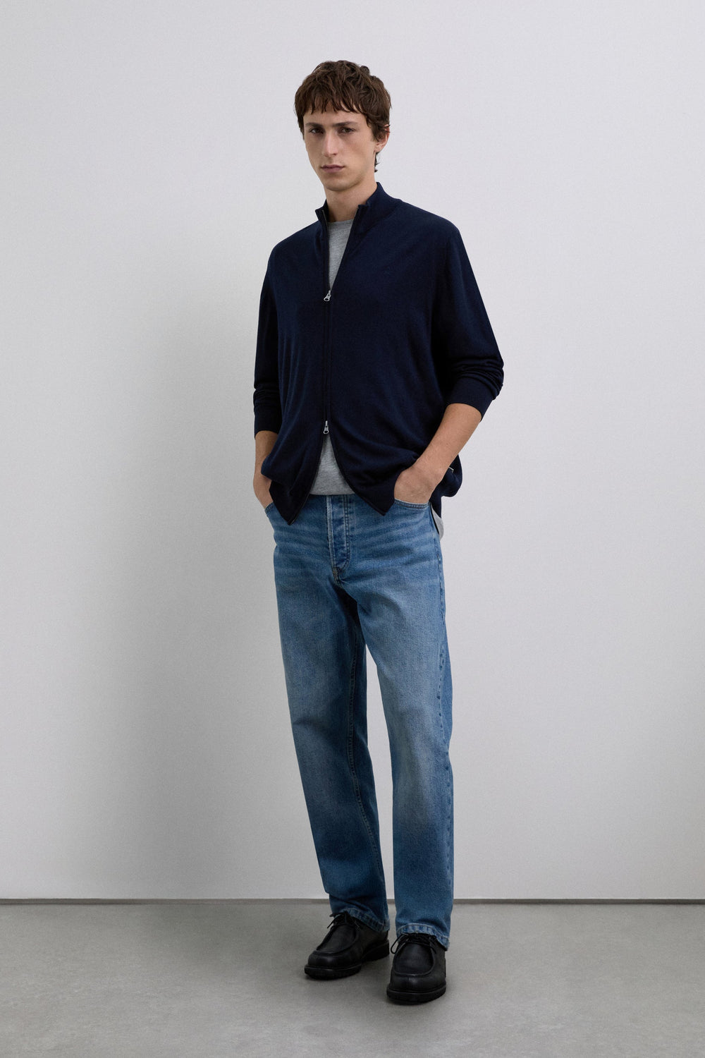 Cardigan made of 100% merino wool. Zip fastening. Long sleeves. Regular fit. Ribbed trim.
