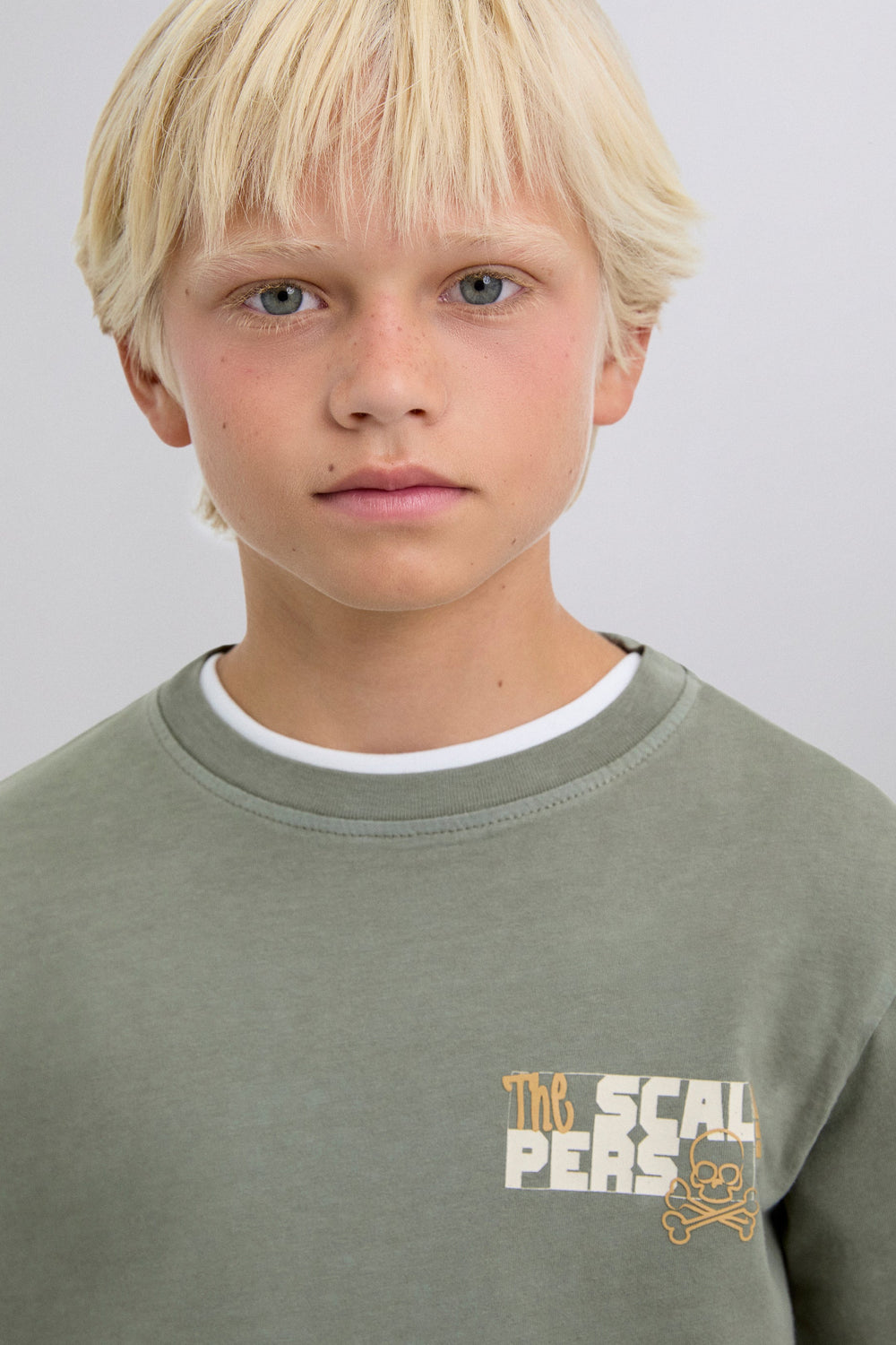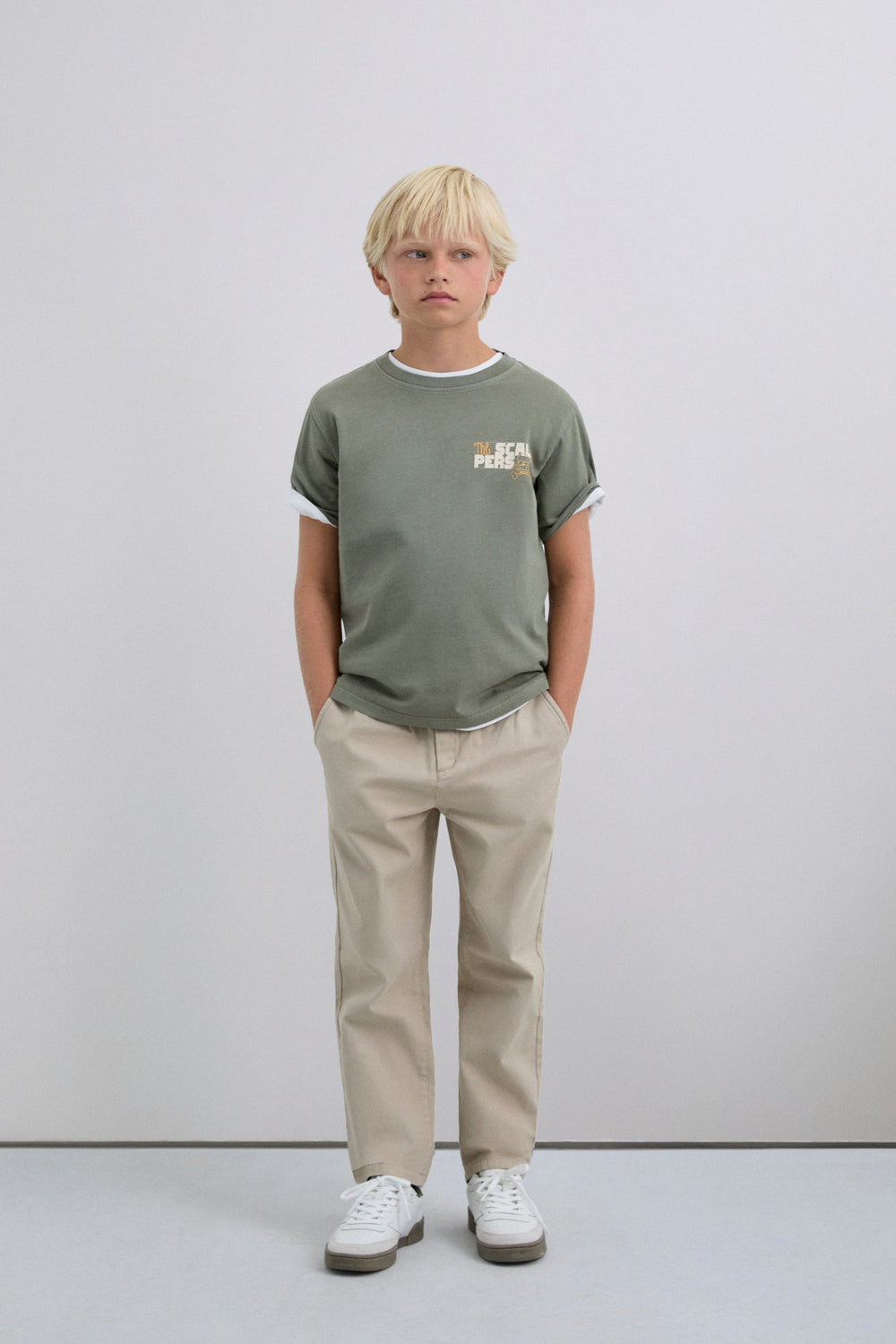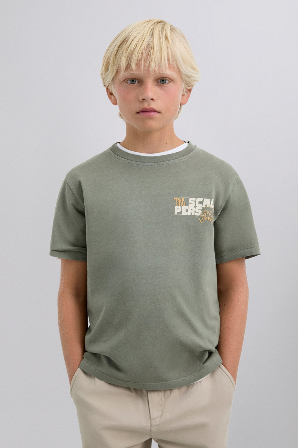 T-shirt made of 100% BCI cotton. Regular fit, short sleeves and round neck. Front and back print with logo.