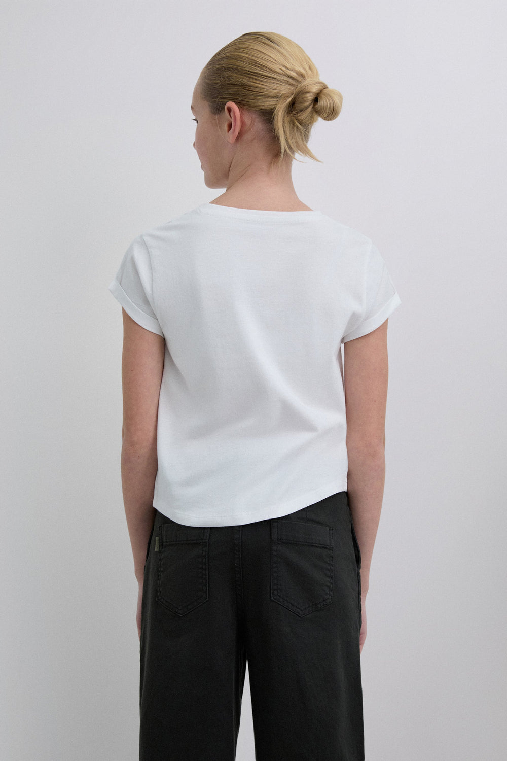 T-shirt made of 100% BCI cotton. Short sleeve. Round neck. Print on front.