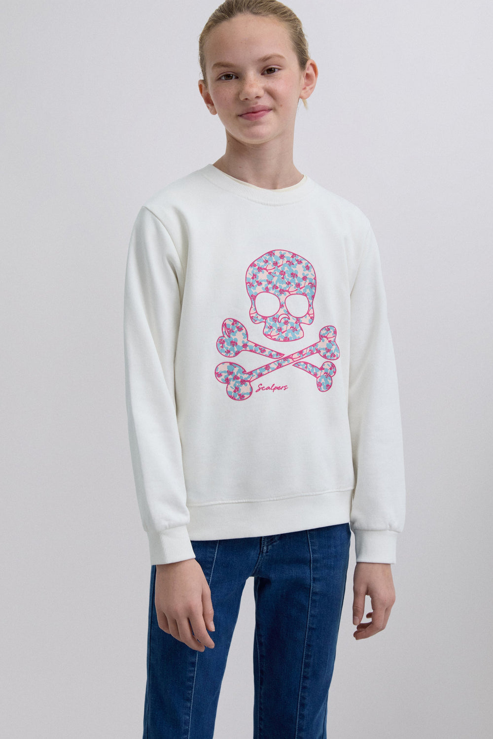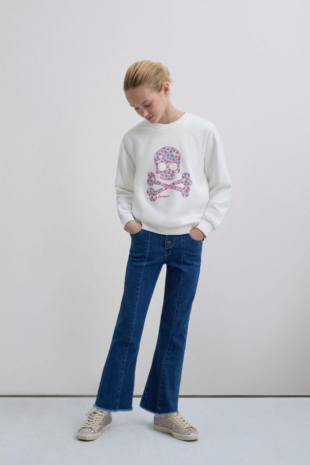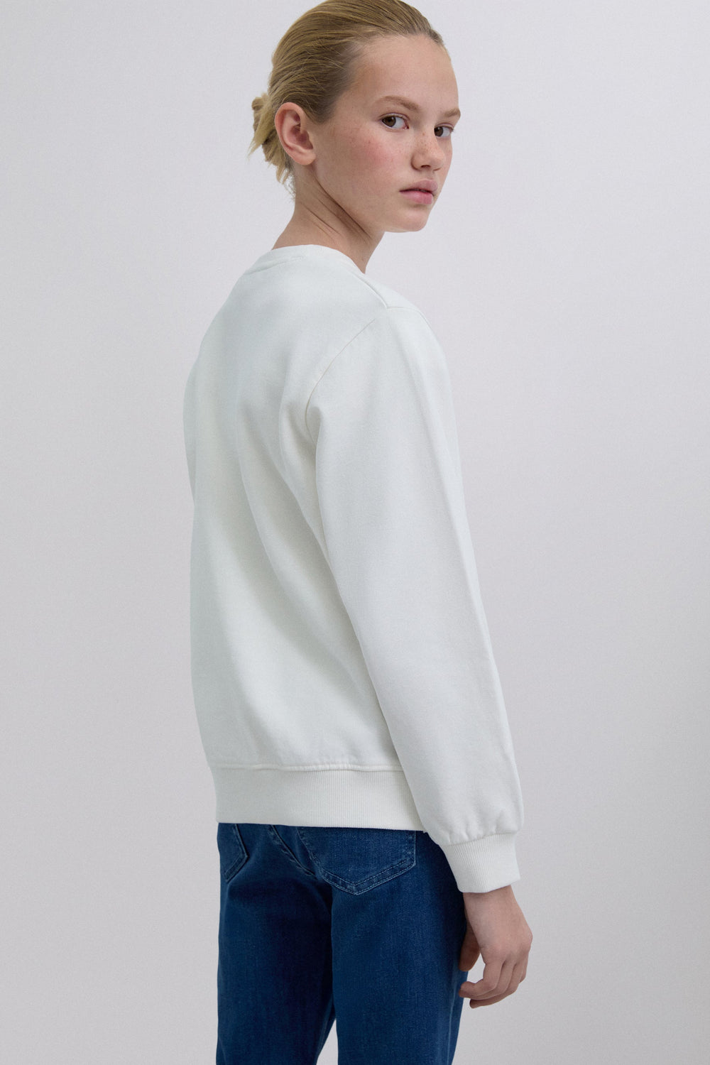 Sweatshirt made of 100% BCI cotton. Long sleeves. Round neck. Embroidered floral motif on front.