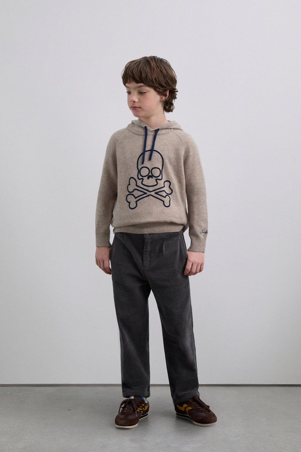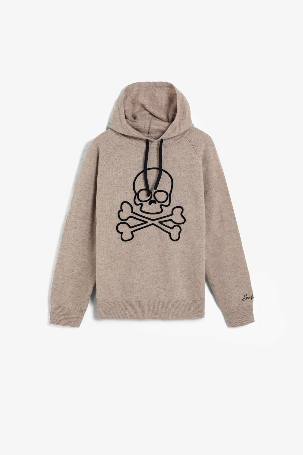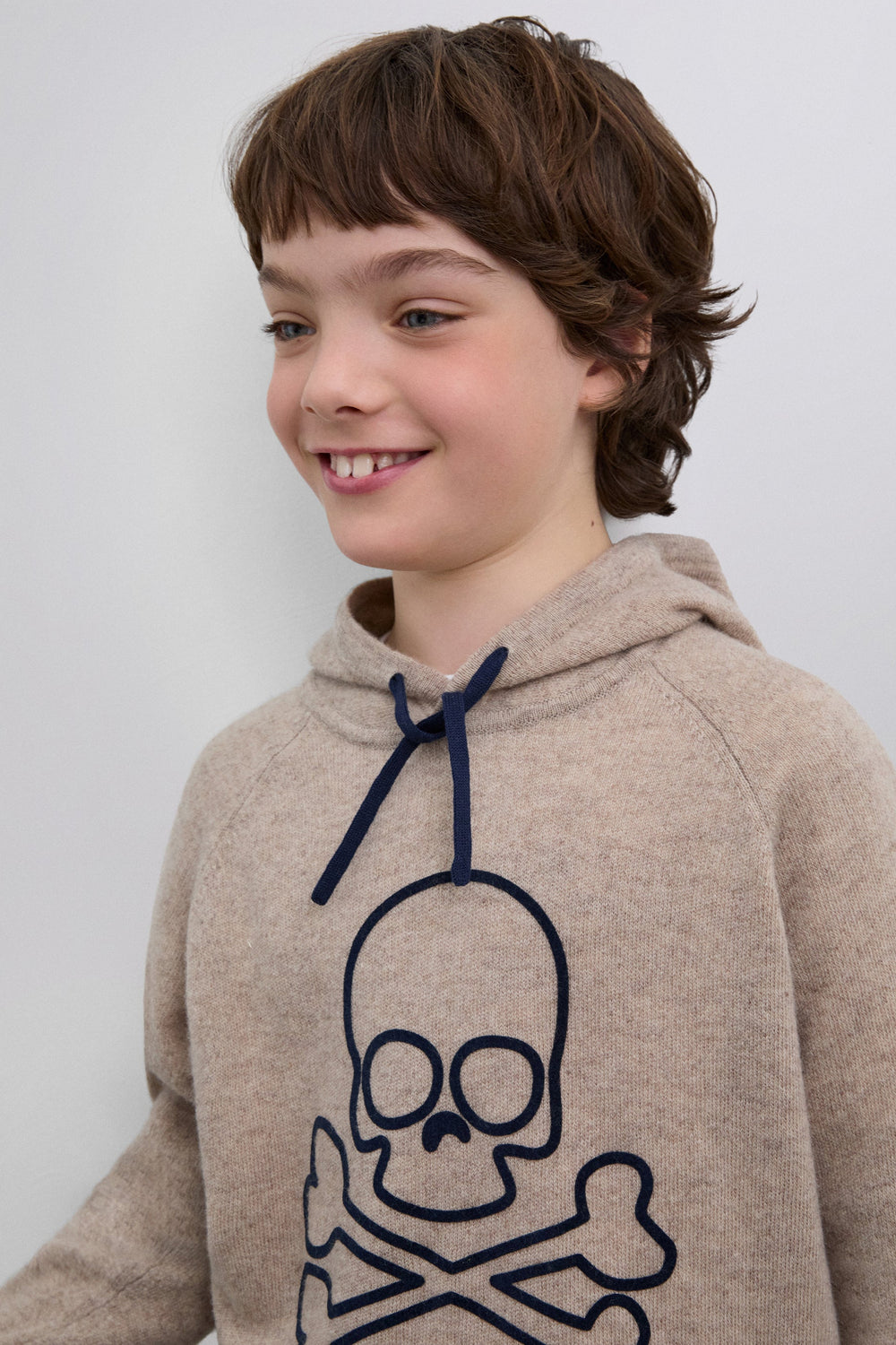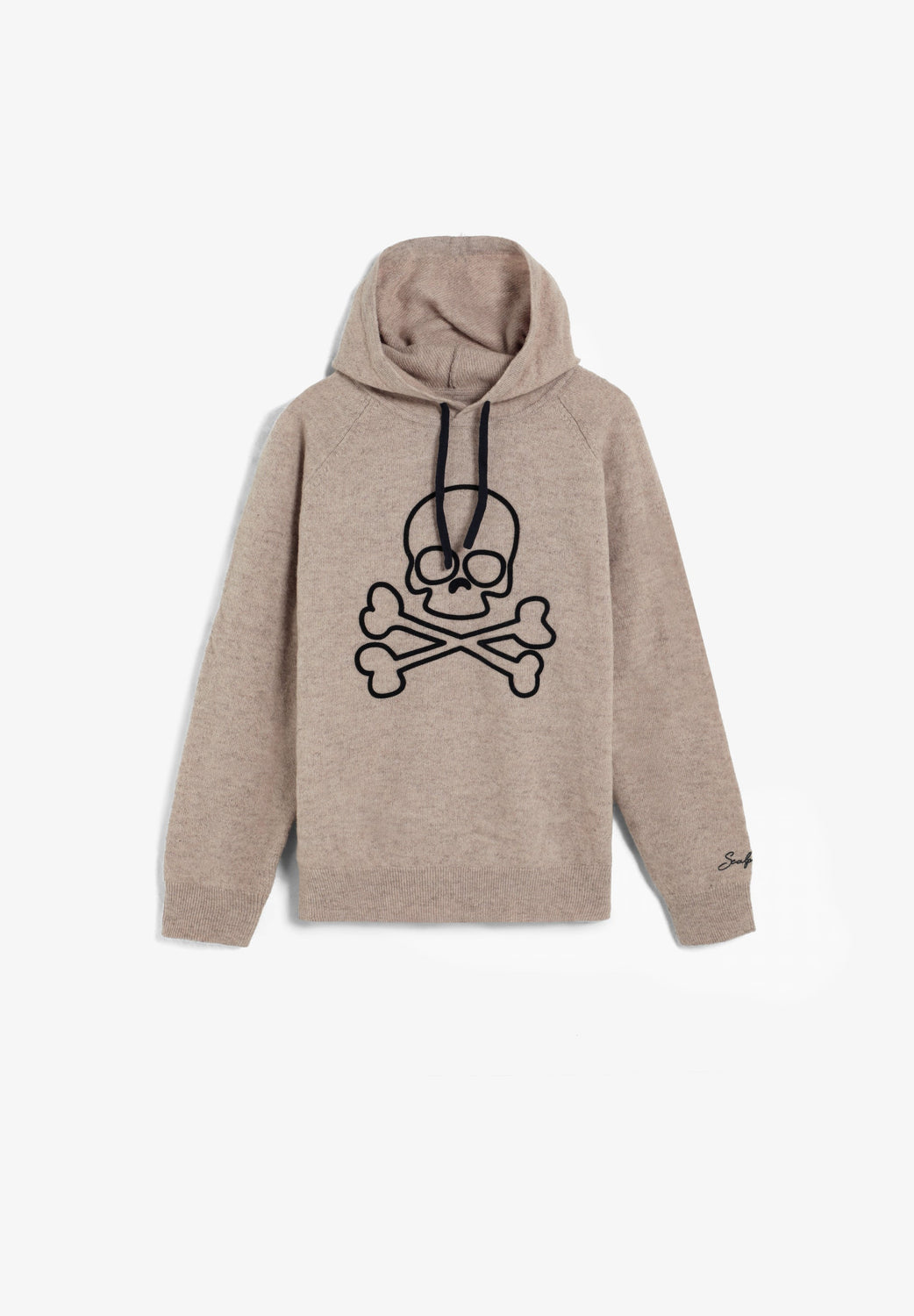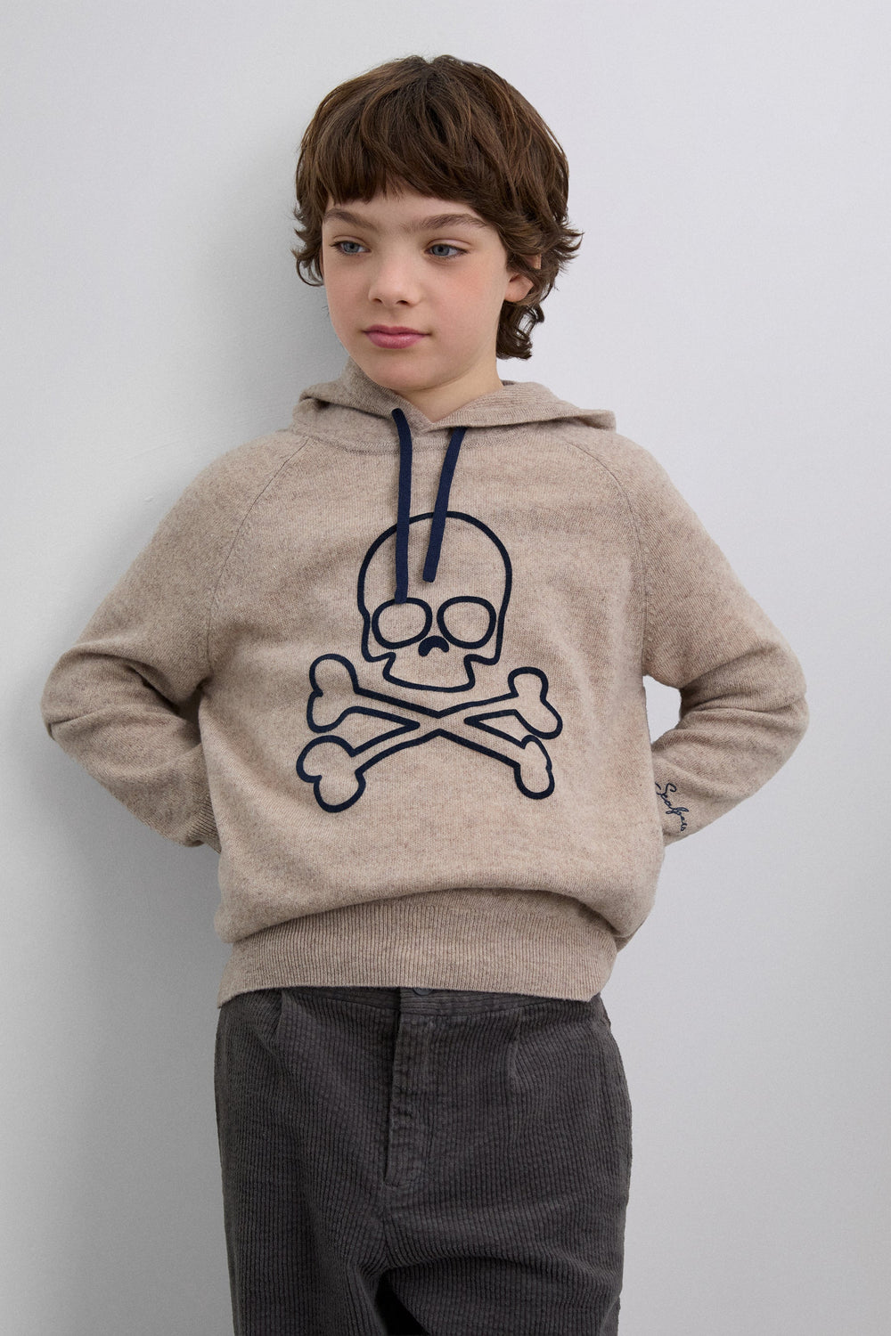 Long sleeve hooded sweater. Regular fit. Collar with adjustable hood. Contrast front skull detail.