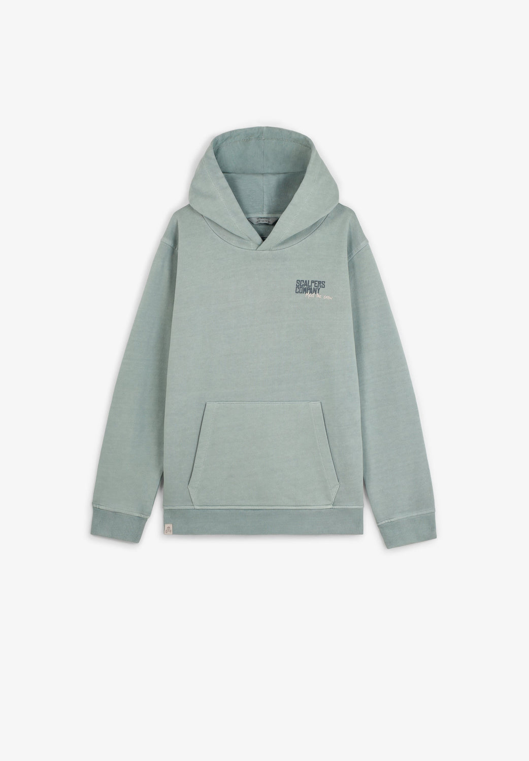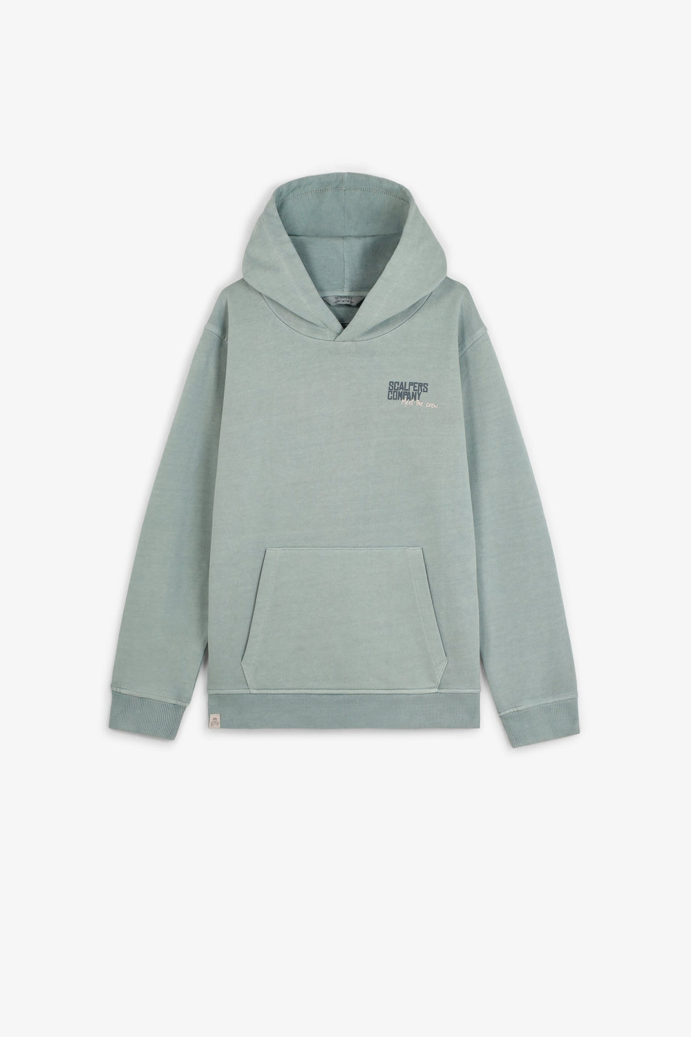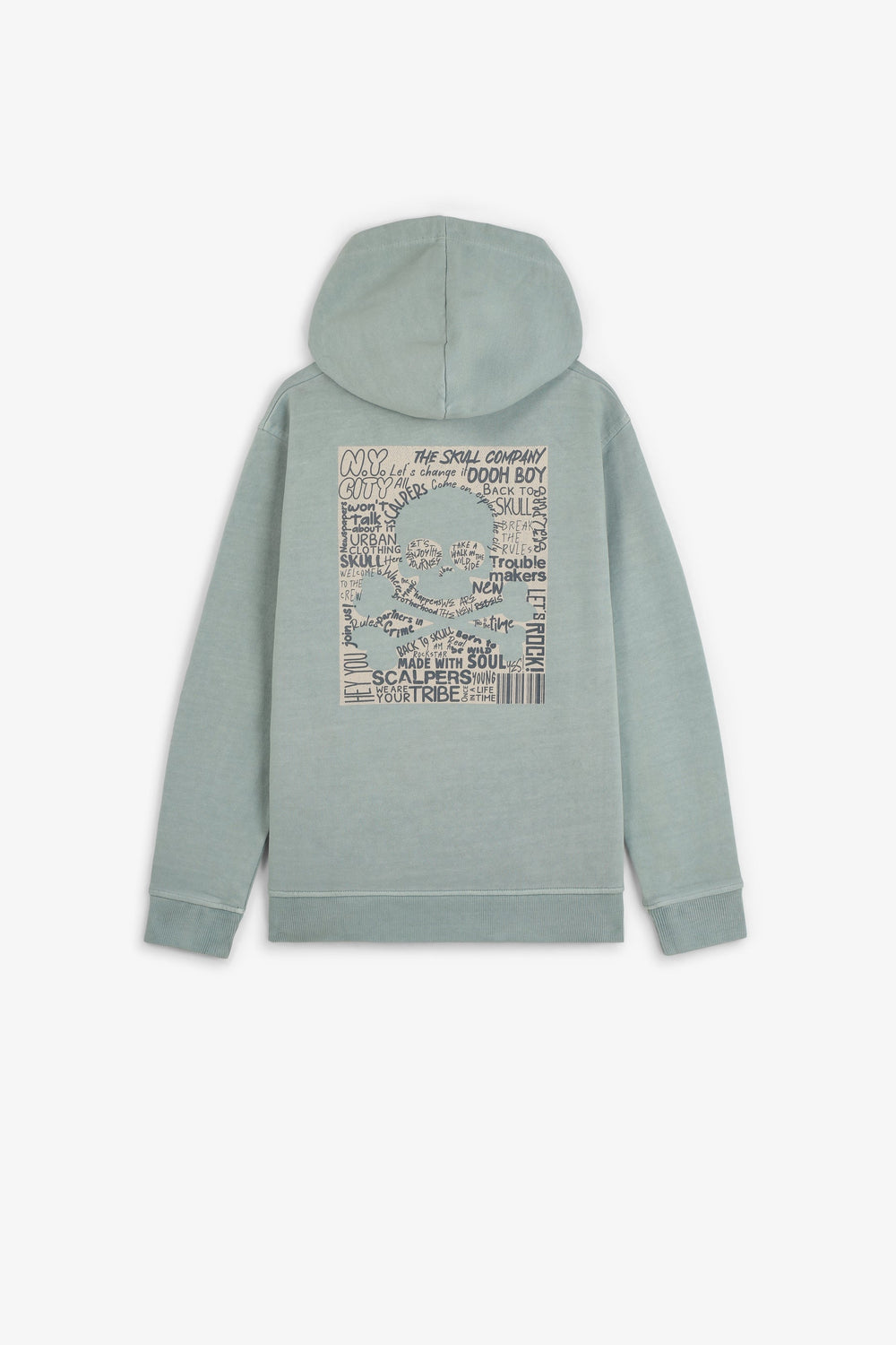 Sweatshirt with hood made of 100% BCI cotton. Print on chest and back. Long sleeves with cuffs and front pouch pockets. Skull label detail on waistband.
