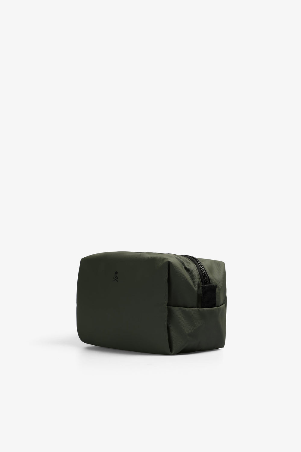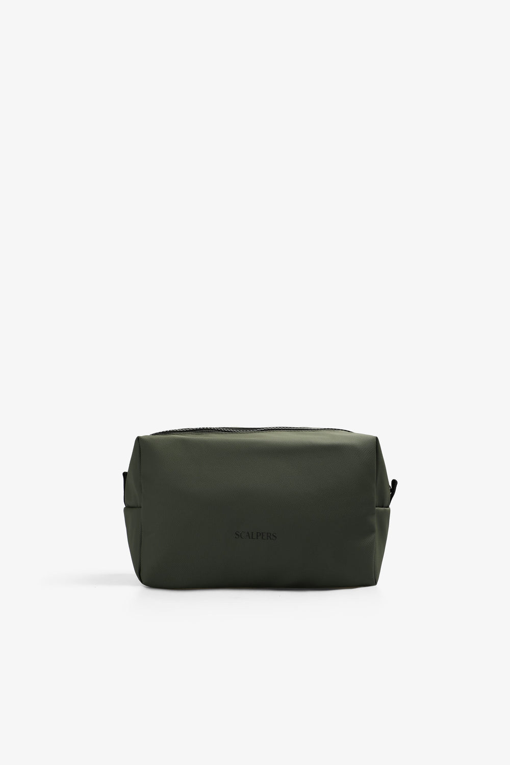 Travel toiletry bag made of technical fabric. Side handles. Zip closure. Inner pockets with zip fastening. Matching logo on front.