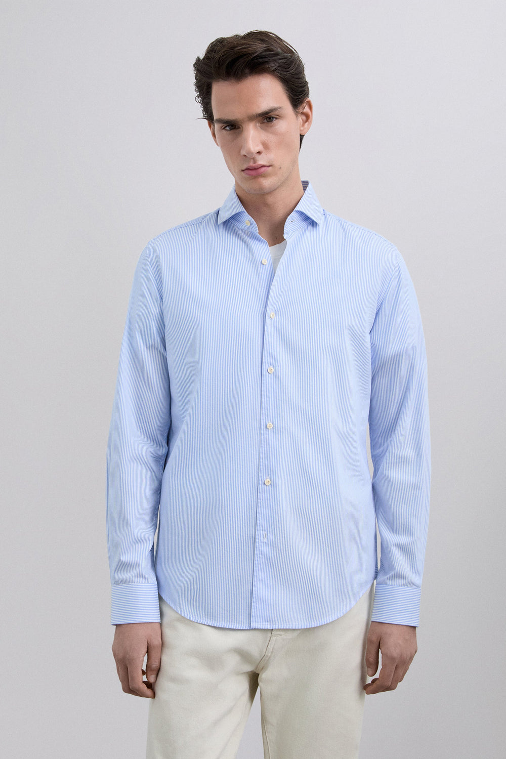 Shirt made of 100% BCI cotton. Regular Fit. Stripe print. Long sleeves. Button-up front and buttoned cuffs.