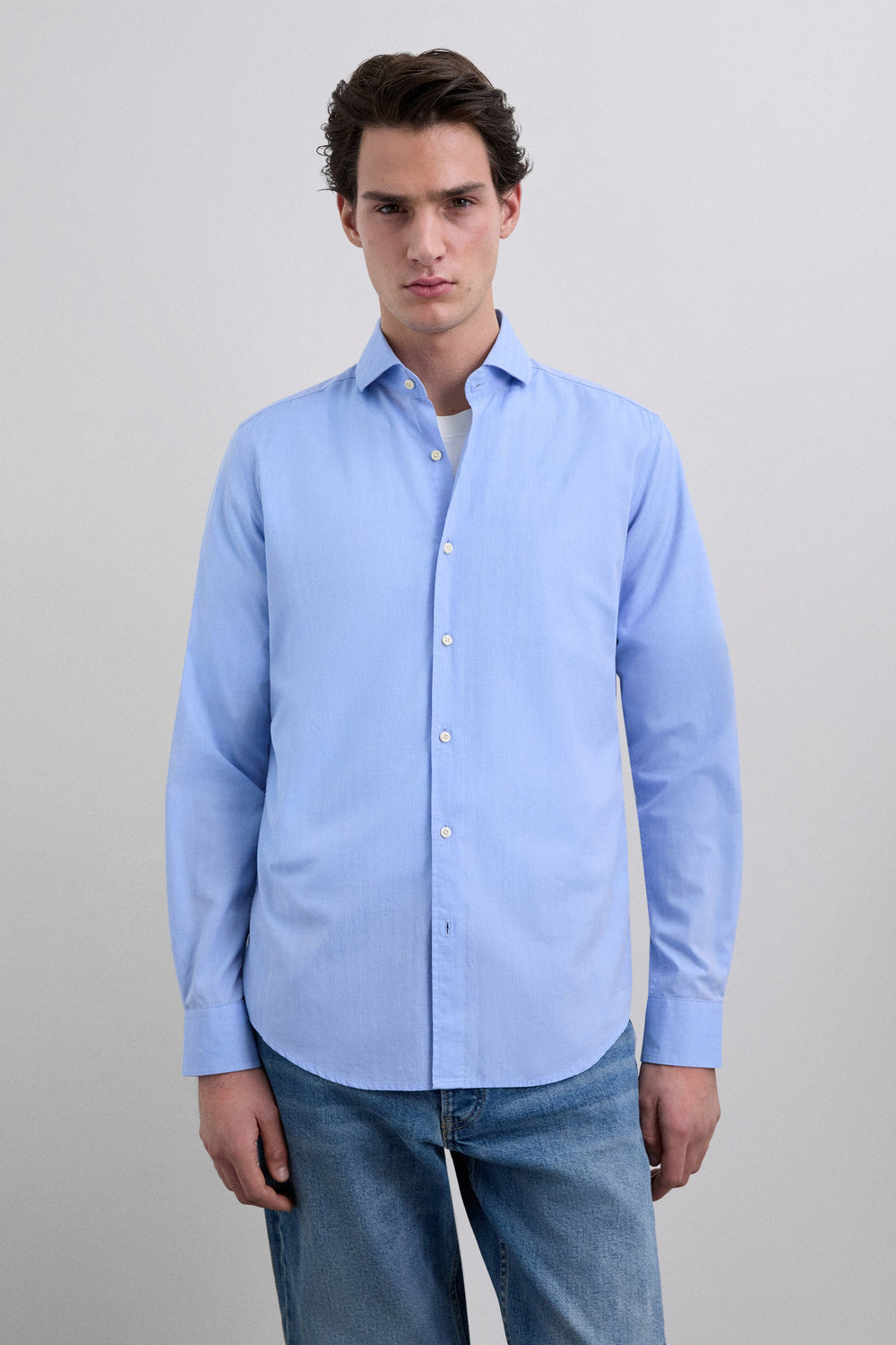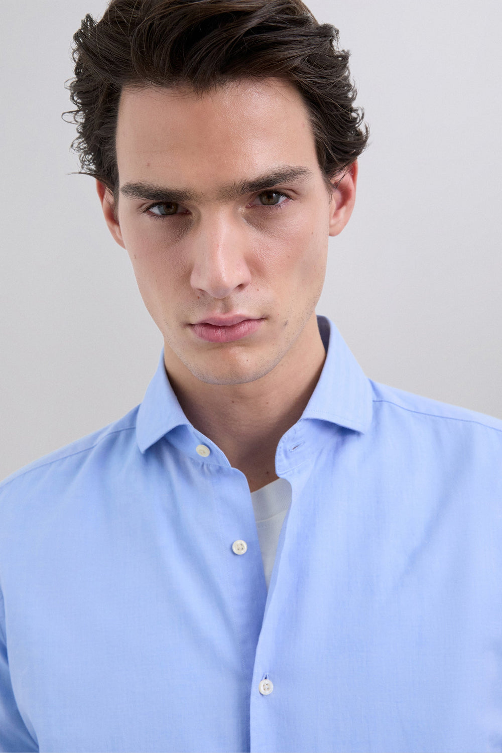 Shirt made of 100% BCI cotton. Regular Fit. Long sleeves. Button-up front and buttoned cuffs.