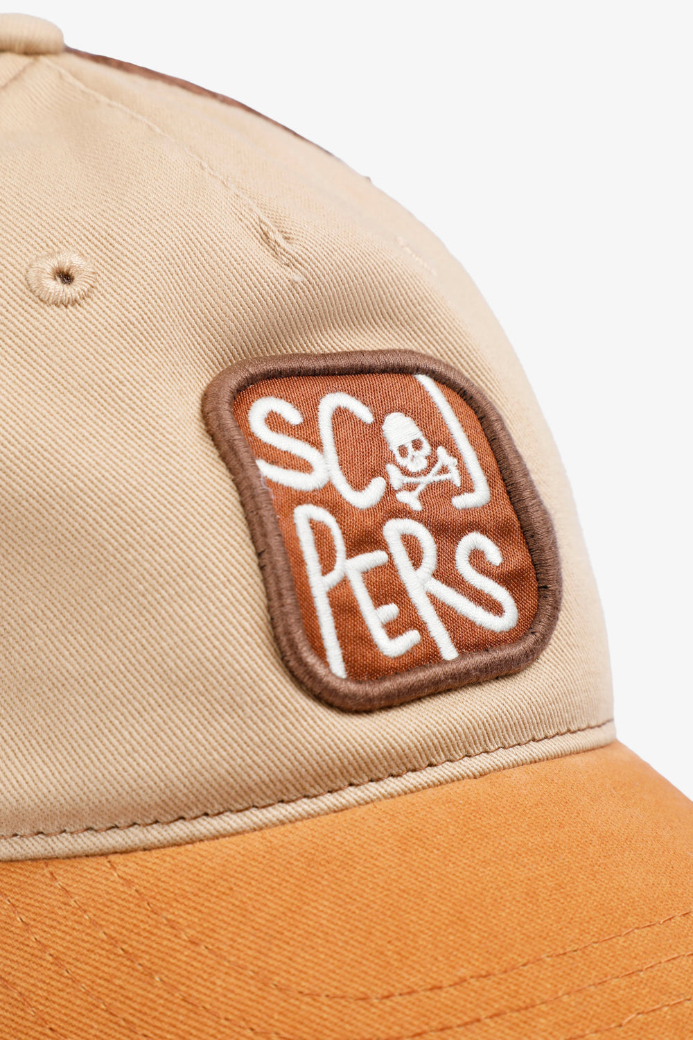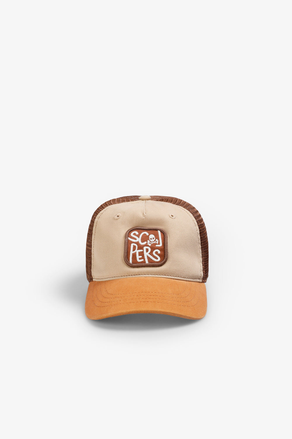 Trucker cap made of cotton and technical fabric with mesh back. Visor and embroidered patch detail with skull and contrast logo.