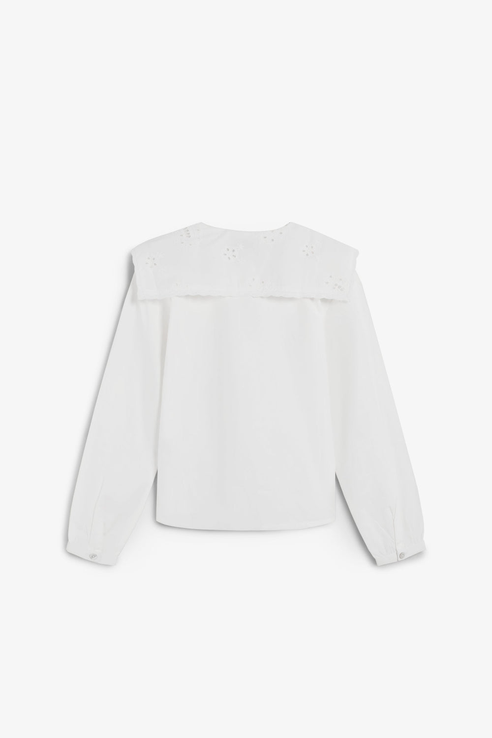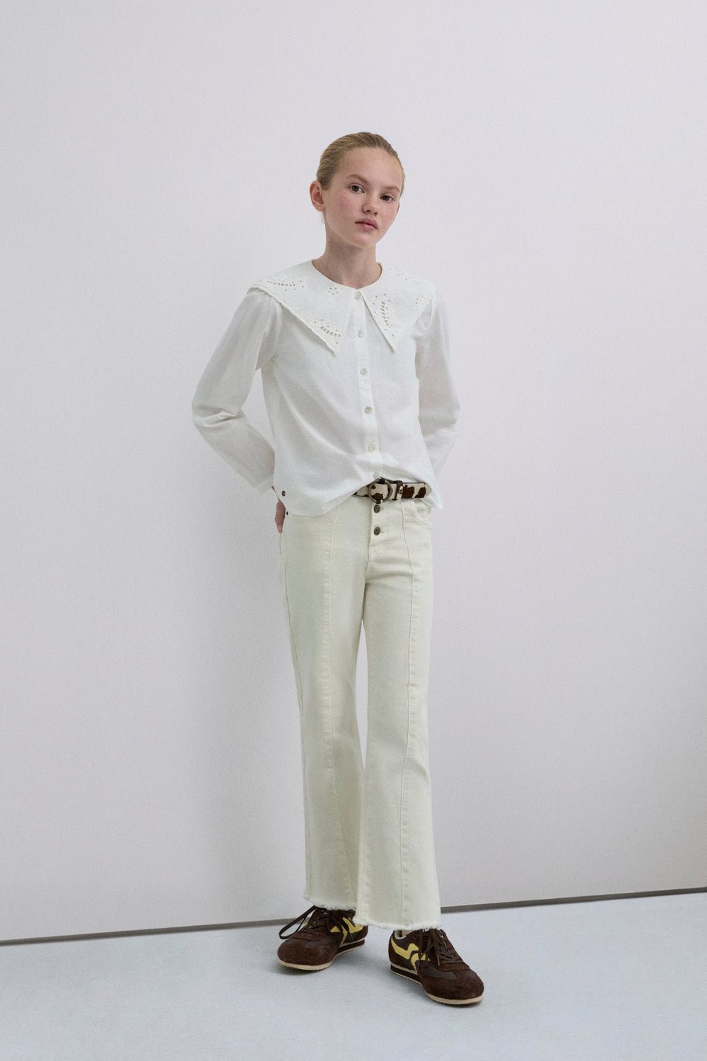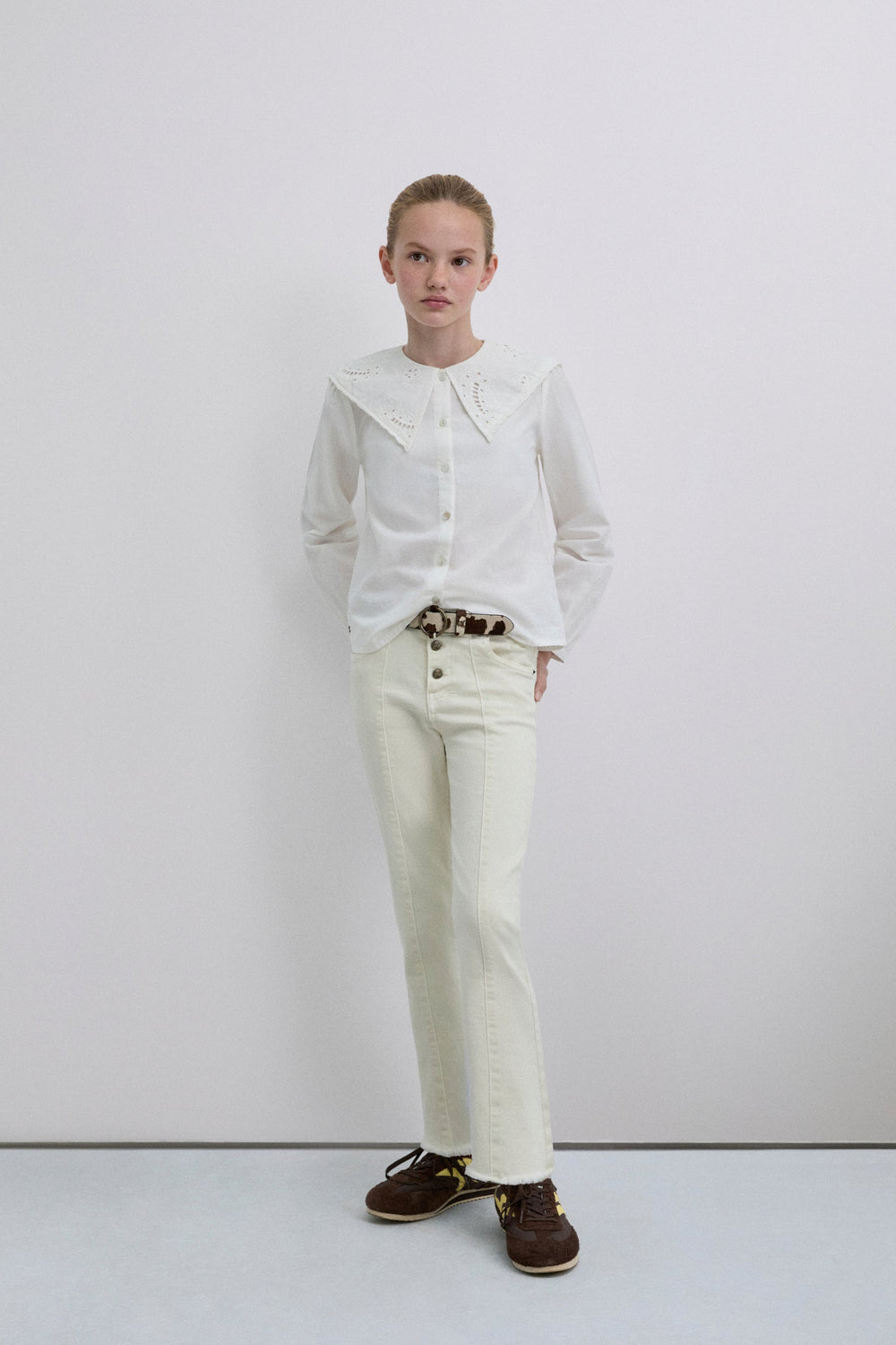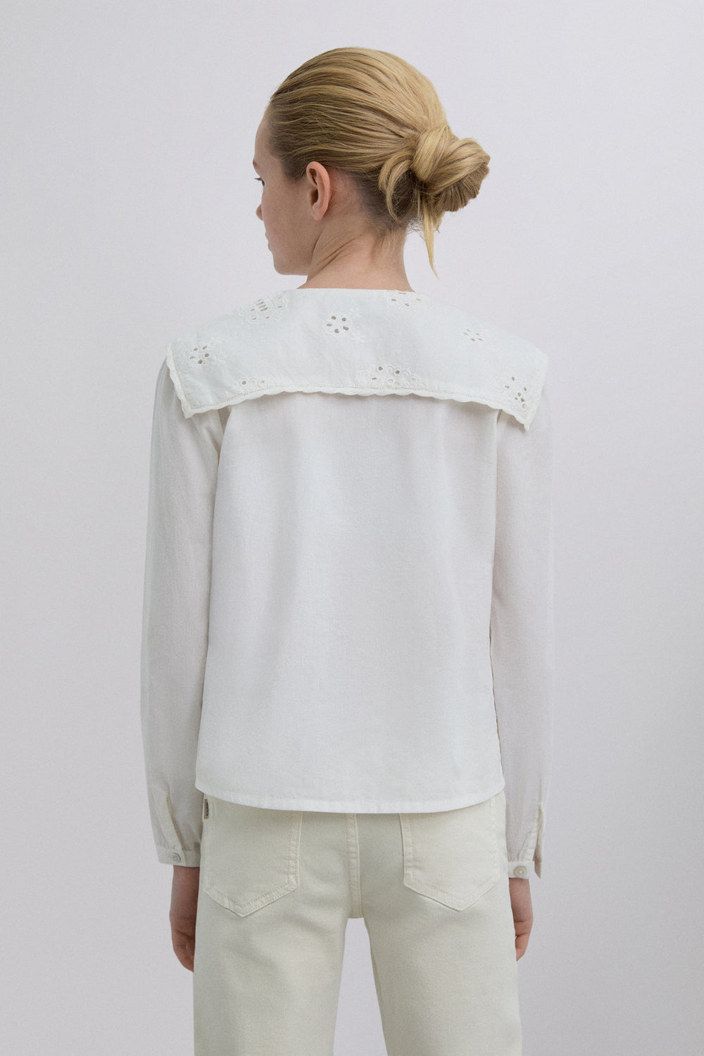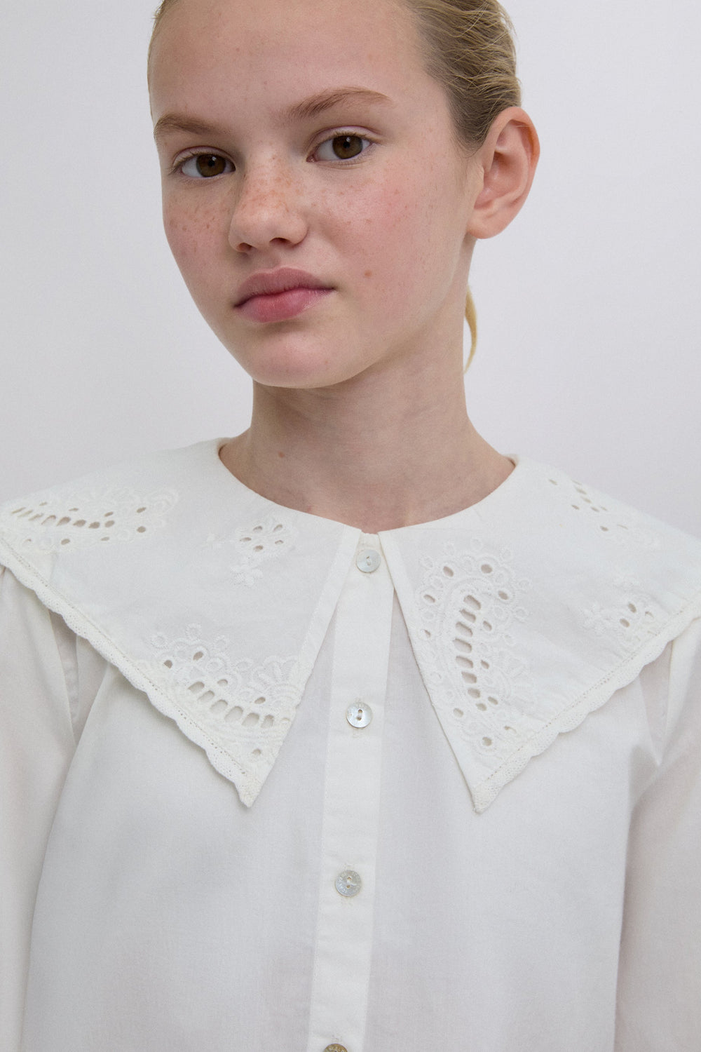 Shirt made of 100% BCI cotton. V-neck with embroidered details and long sleeves with elasticated cuffs. Front button fastening.