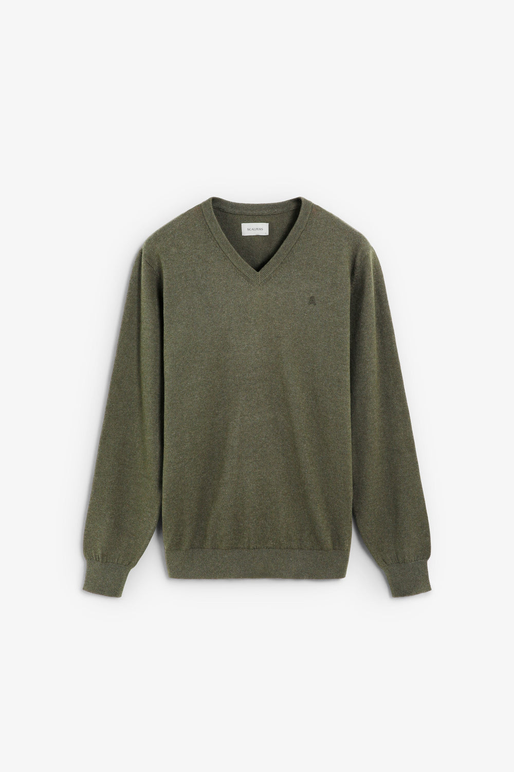 Sweater made of a cotton and cashmere blend. Long sleeves. V-neck. Ribbed trim. Matching embroidered logo detail on the chest.