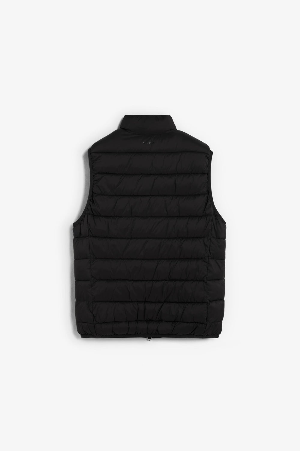 Puffer vest made of cotton and recycled polyester fabric. Slim fit. High collar. Double slider zip fastening. Zip pockets and an inner pocket. Logo detail on the chest