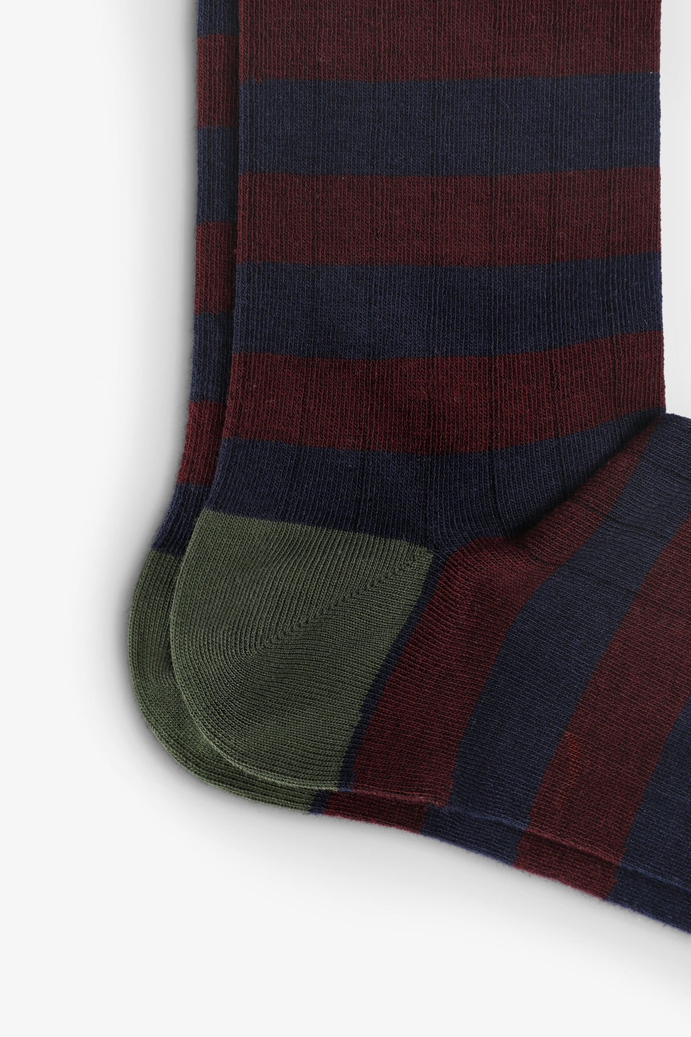 Socks made of an organic cotton blend. Stripe print. Contrast embroidered skull detail. Height: 36cm / Foot length: 23 cm.