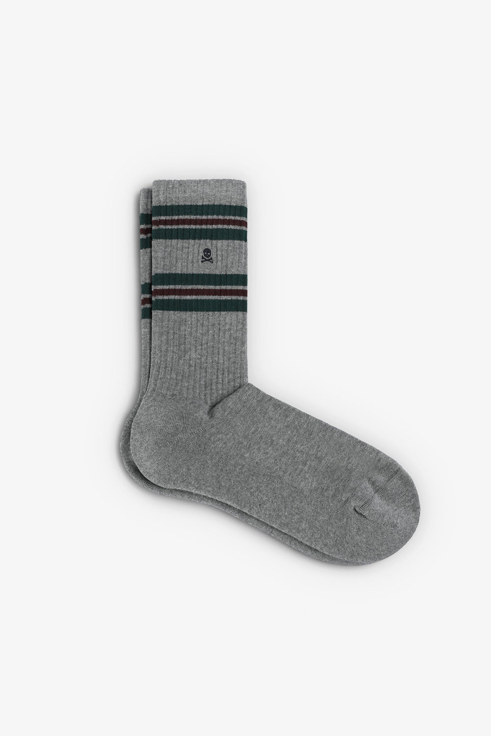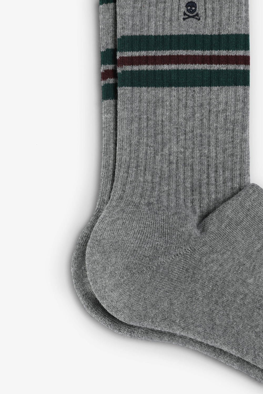 Socks made of an organic cotton blend. Striped detail. Contrast embroidered skull detail.
