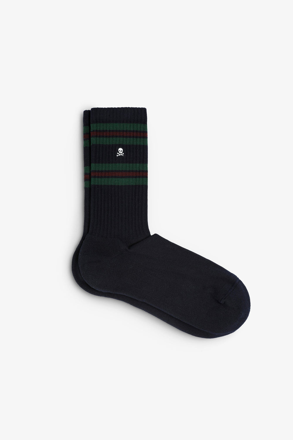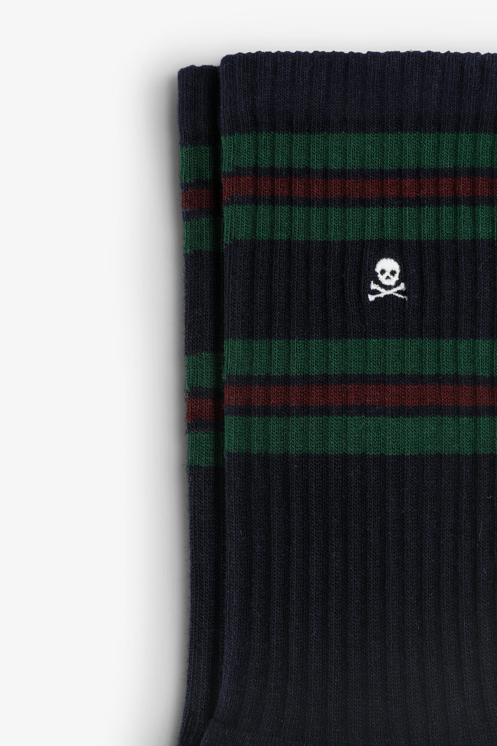 Socks made of an organic cotton blend. Striped detail. Contrast embroidered skull detail.