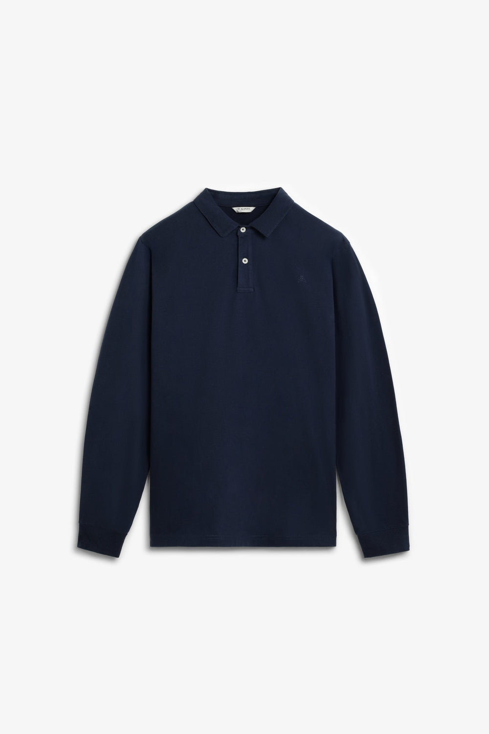 Long sleeve polo shirt made of 100% cotton. Matching embroidered skull detail on the chest. Shirt collar. Front button fastening.