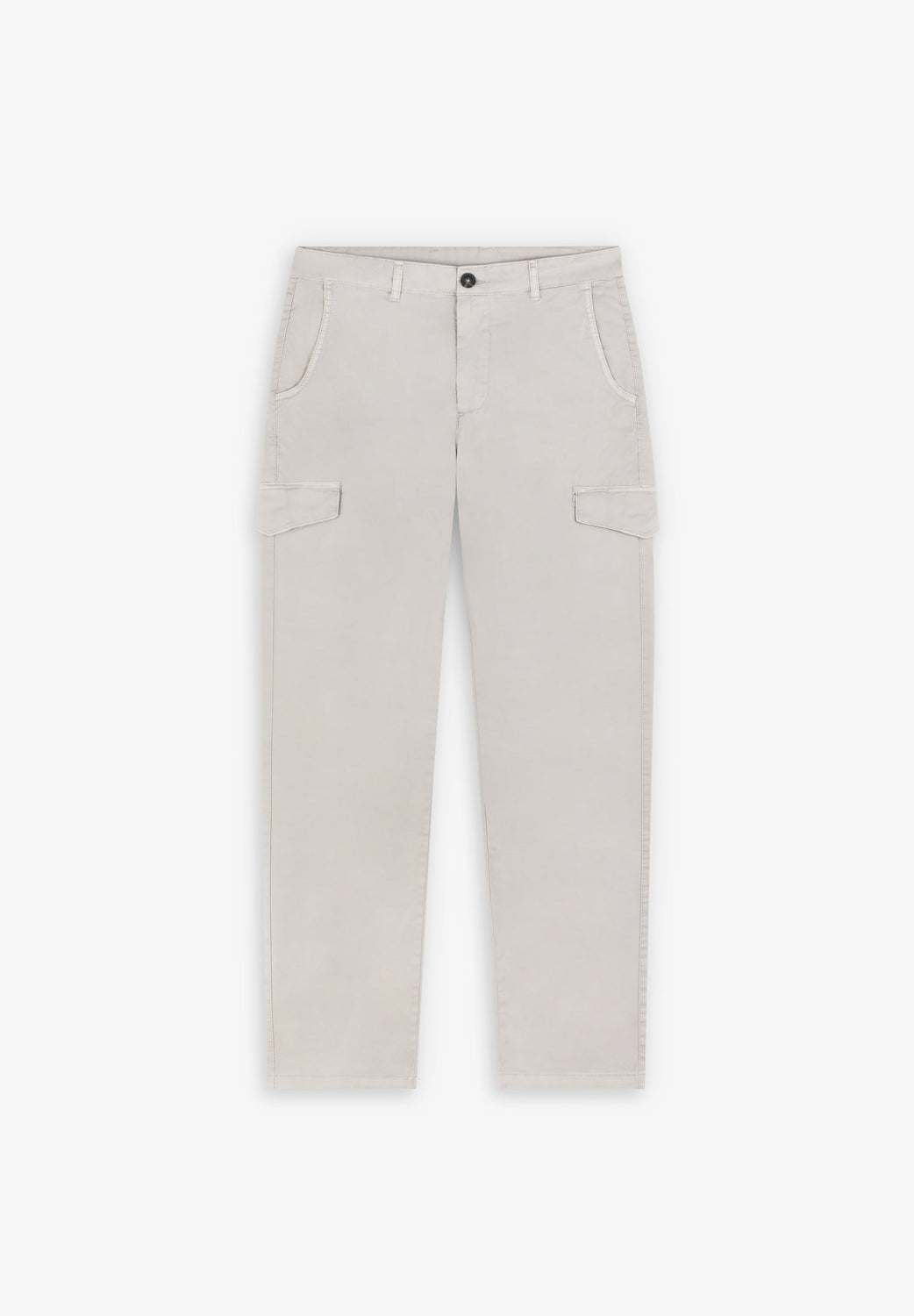 Cargo trousers made of a BCI cotton blend. Slim fit. Two front pockets, back pockets with button fastening and side flap pockets. Belt loops and button and zip fastening. Embroidered logo on the back pocket.