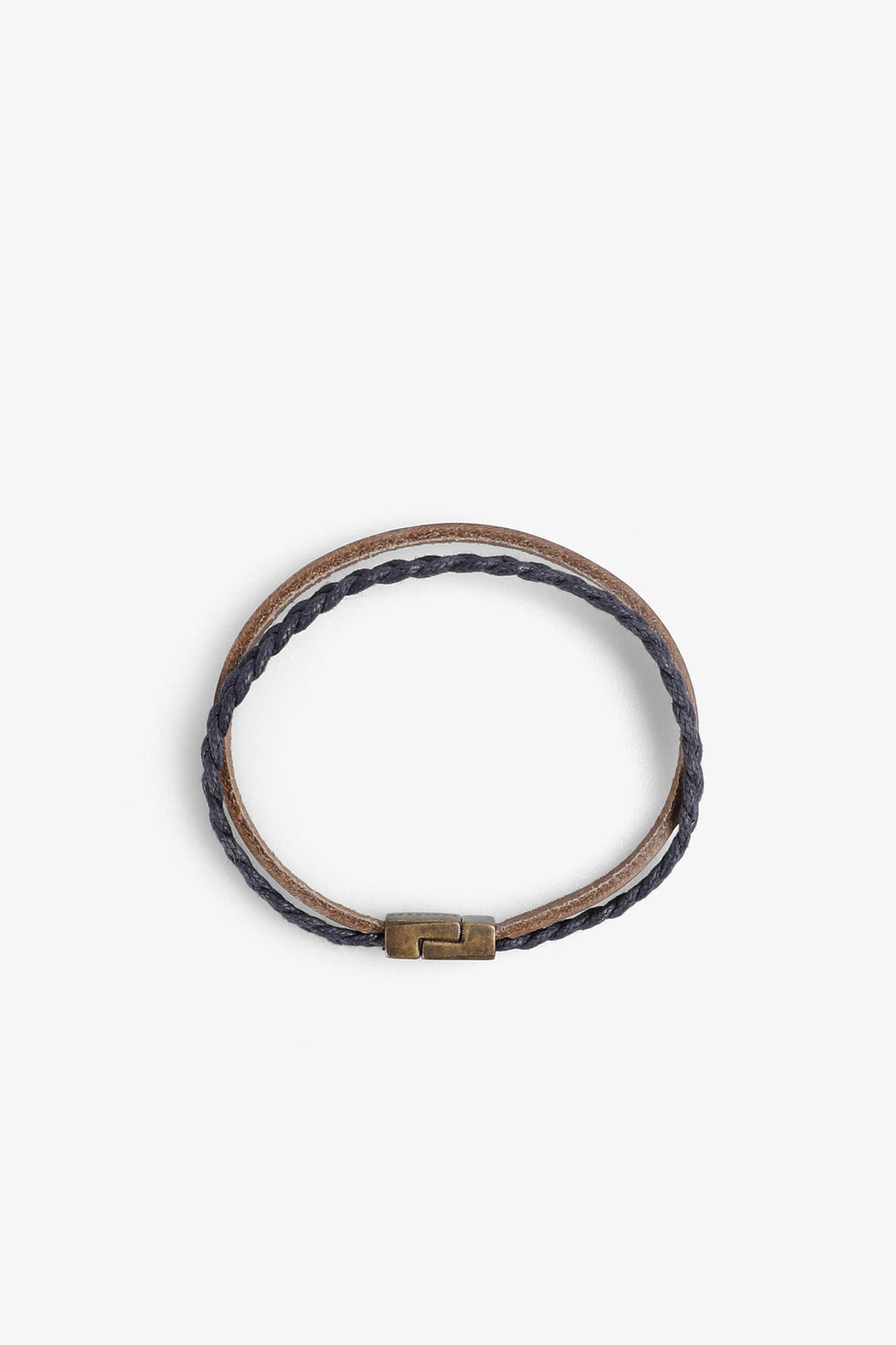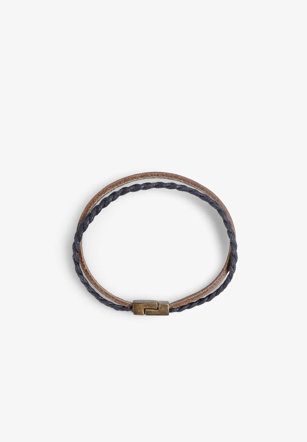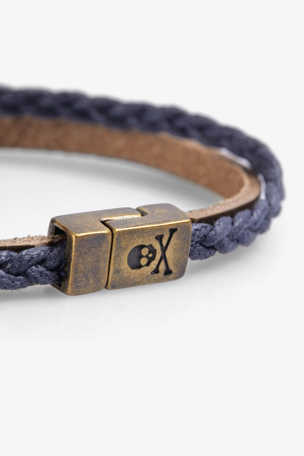 Leather bracelet made of 100% leather and cotton. Metal detail, engraved skull and snap closure.