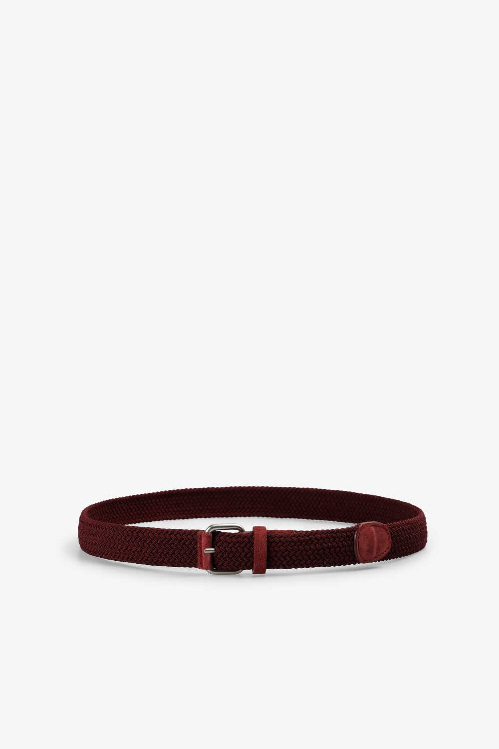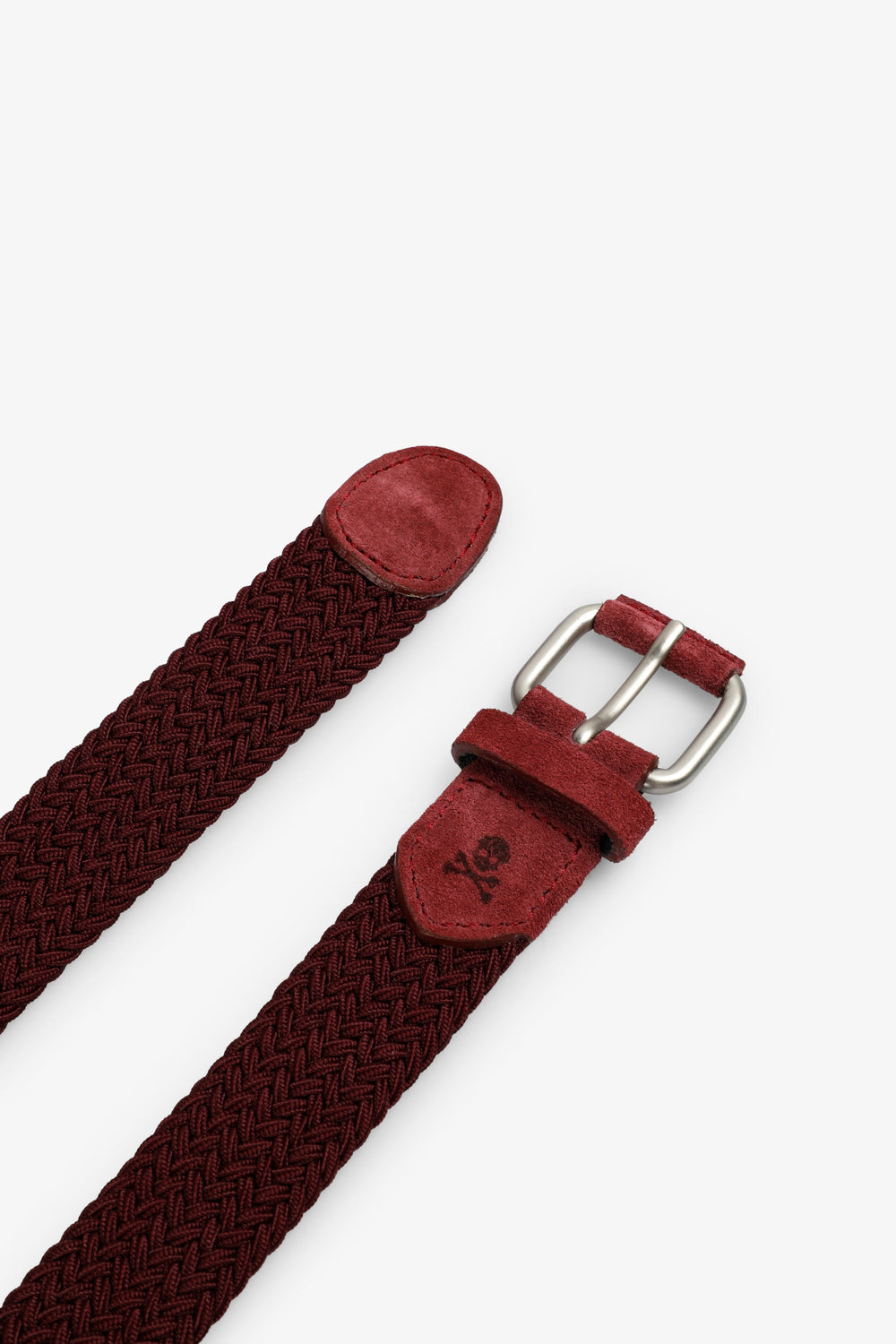Braided belt. Closes with adjustable buckle. Matching embroidered skull detail. 100% leather trim.