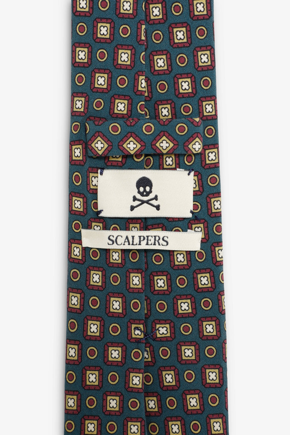 100% silk tie with geometric logo print and lined, 7.5 cm wide.