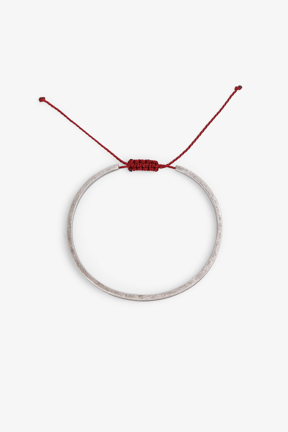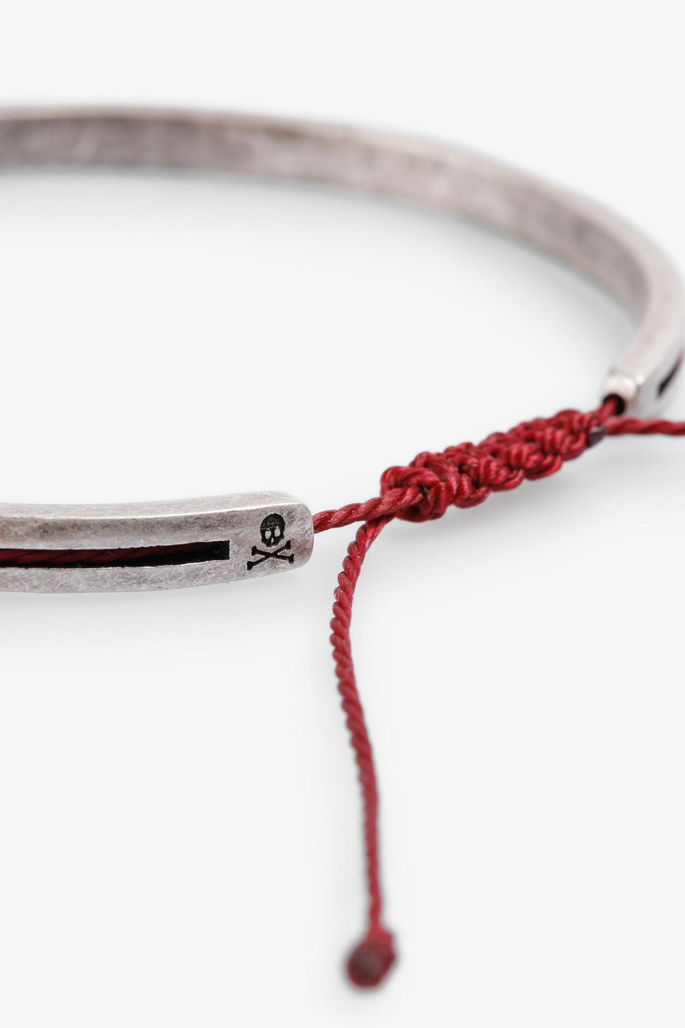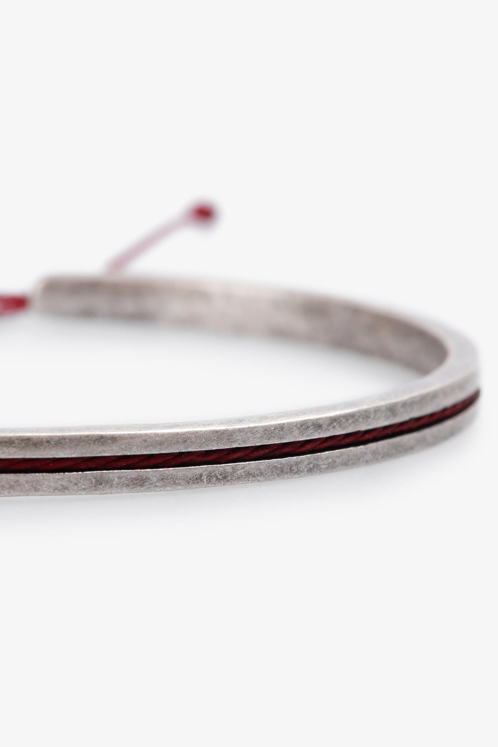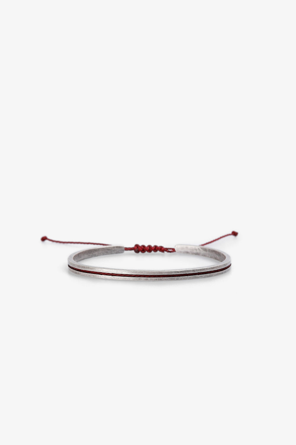 Bracelet made of brass with silver tone finish. Contrast stripe. Adjustable wrist fastening.