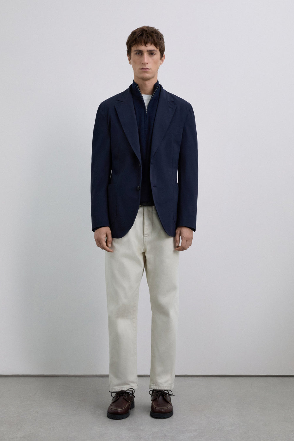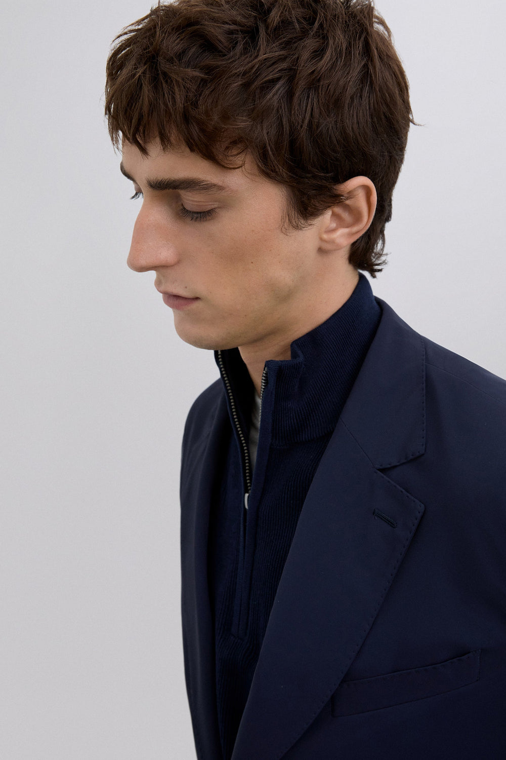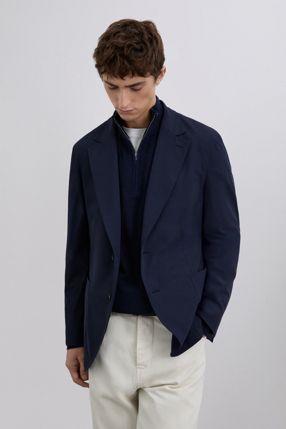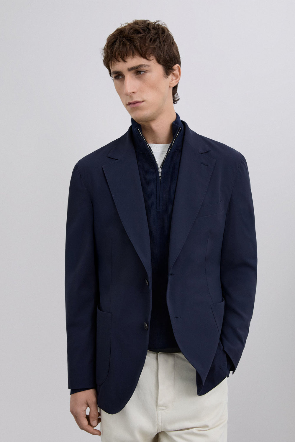 Slim fit blazer made from Italian brand TG di Fabio fabrics. Notched lapel collar. Long sleeves with button detail. Welt pockets on the chest and flap pockets at the hip. Inner pocket detail. Hem with back vent. Front button fastening.