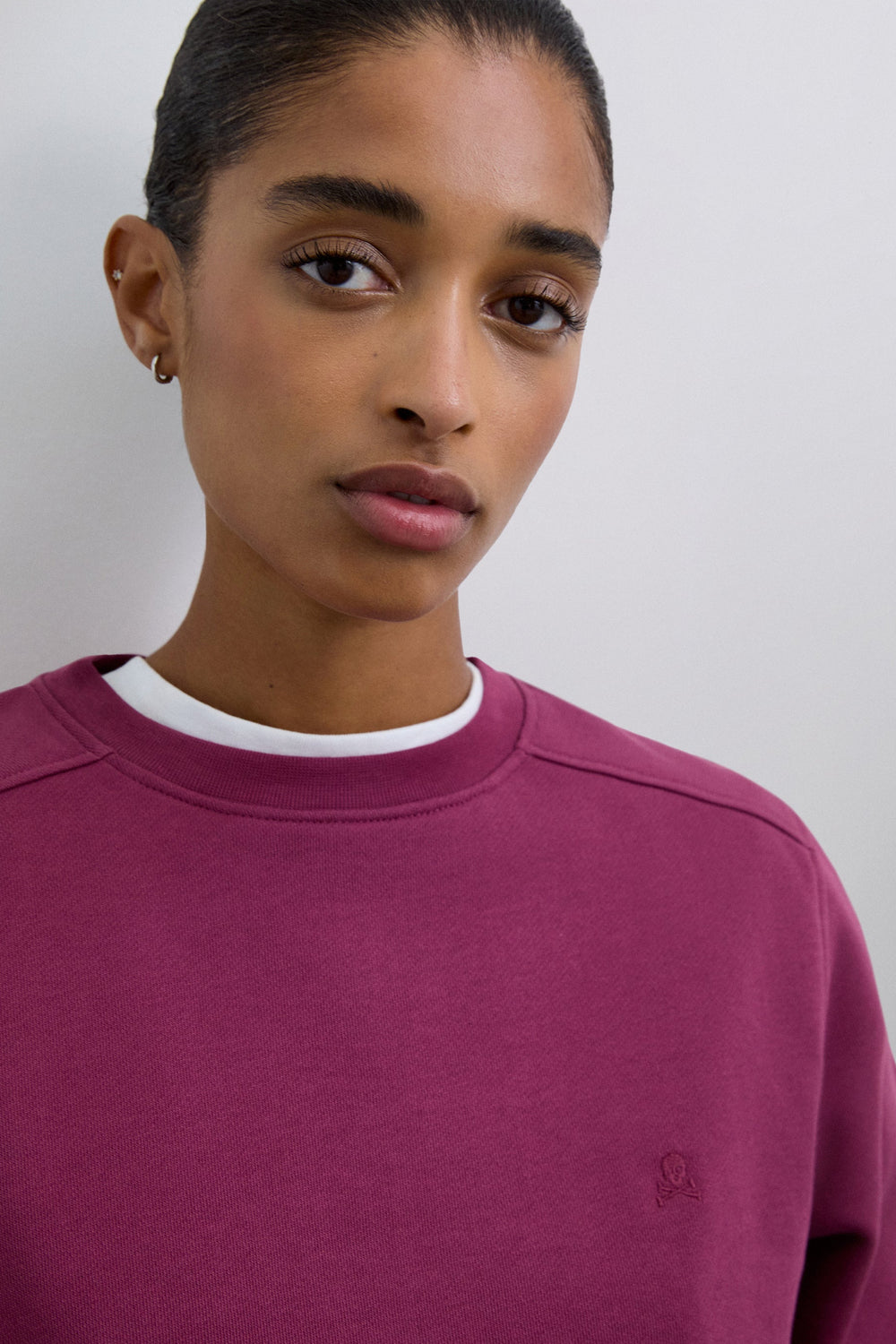 Sweatshirt made of 100% organic cotton. Regular fit, round neck and long sleeves with ribbed cuffs. Asymmetric hem, longer back. Embroidered skull detail on the chest.