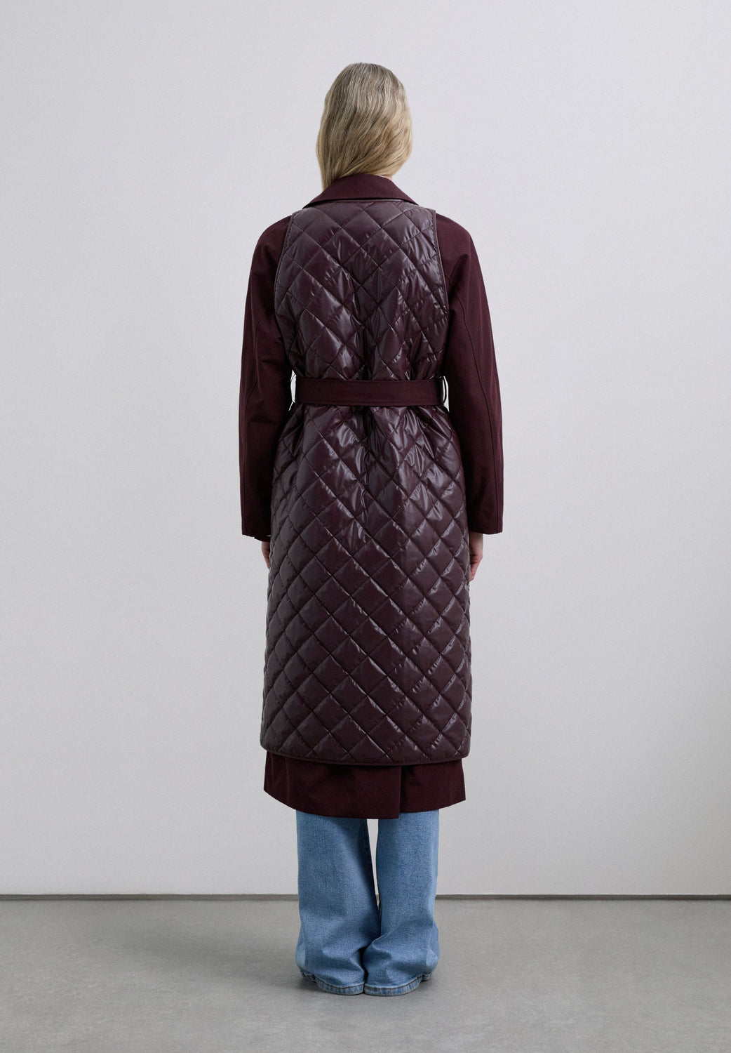 Waterproof trench coat. Slightly oversize. Collar with button fastening and front fastening with buttons and belt. Long sleeves. Detachable puffer vest.