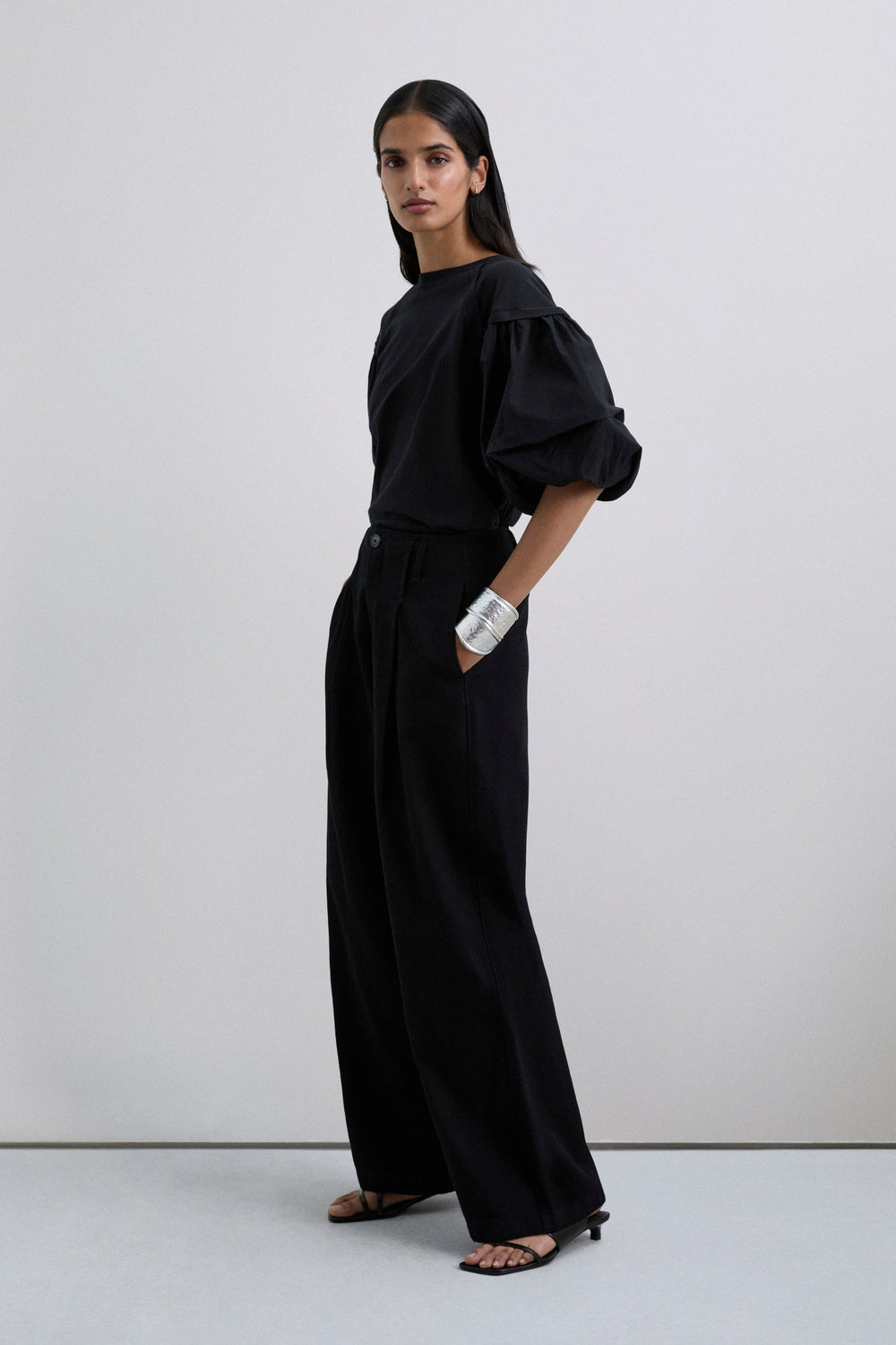 T-shirt made of 100% BCI cotton. Regular fit, round neck and long puff sleeves.