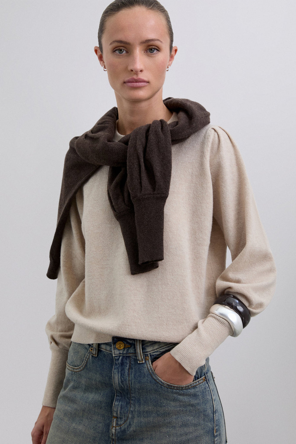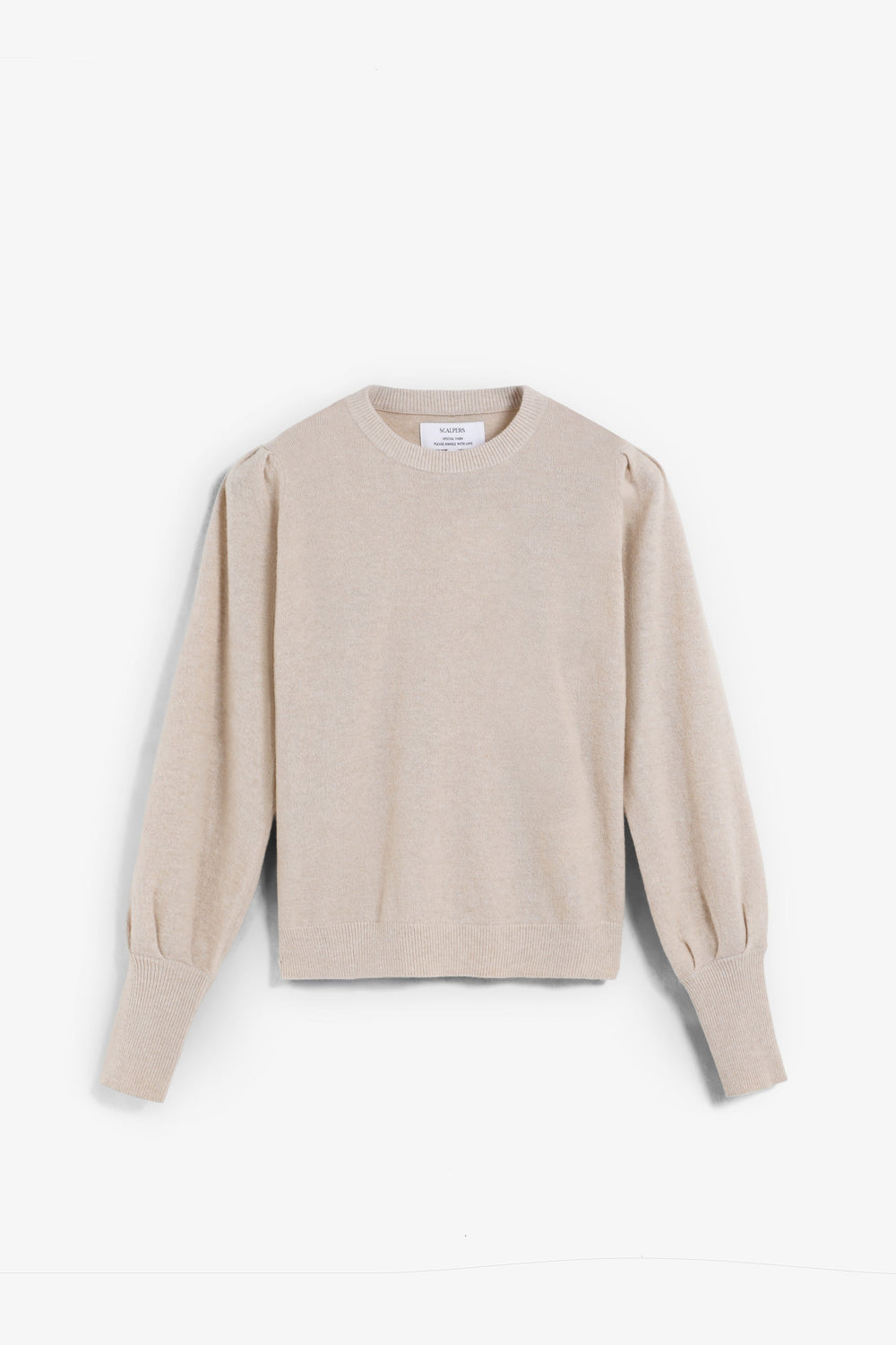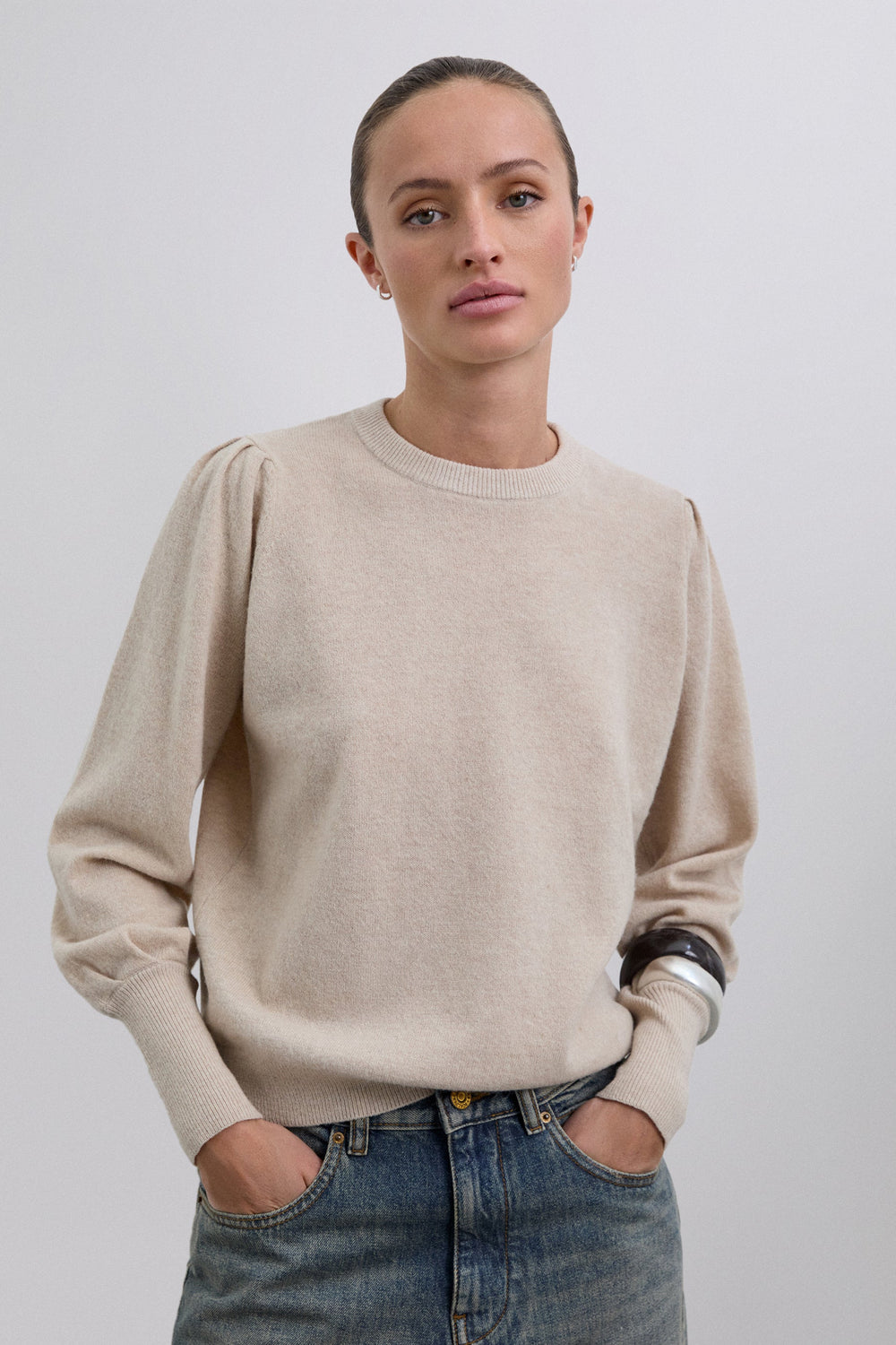 Sweater made of a wool blend. Regular fit. Round neck. Long slightly puffed sleeves with ribbed cuffs.
