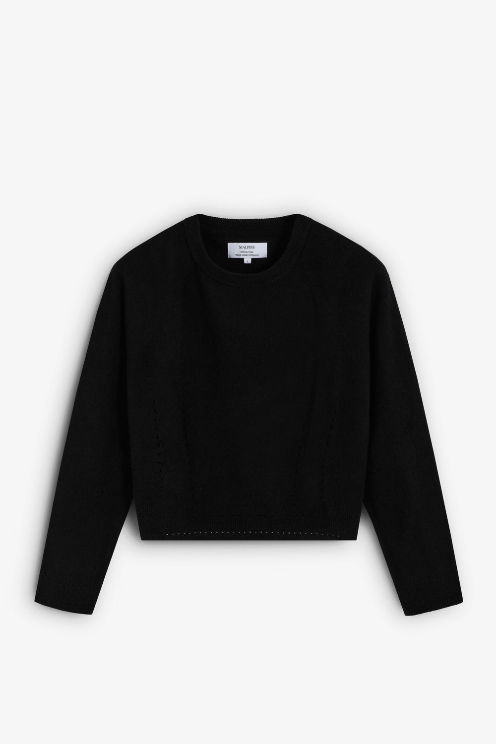 Sweater made of wool and cashmere blend. Regular fit. Round neck and long sleeves with ribbed trim. Mini cutout detailing on the front.